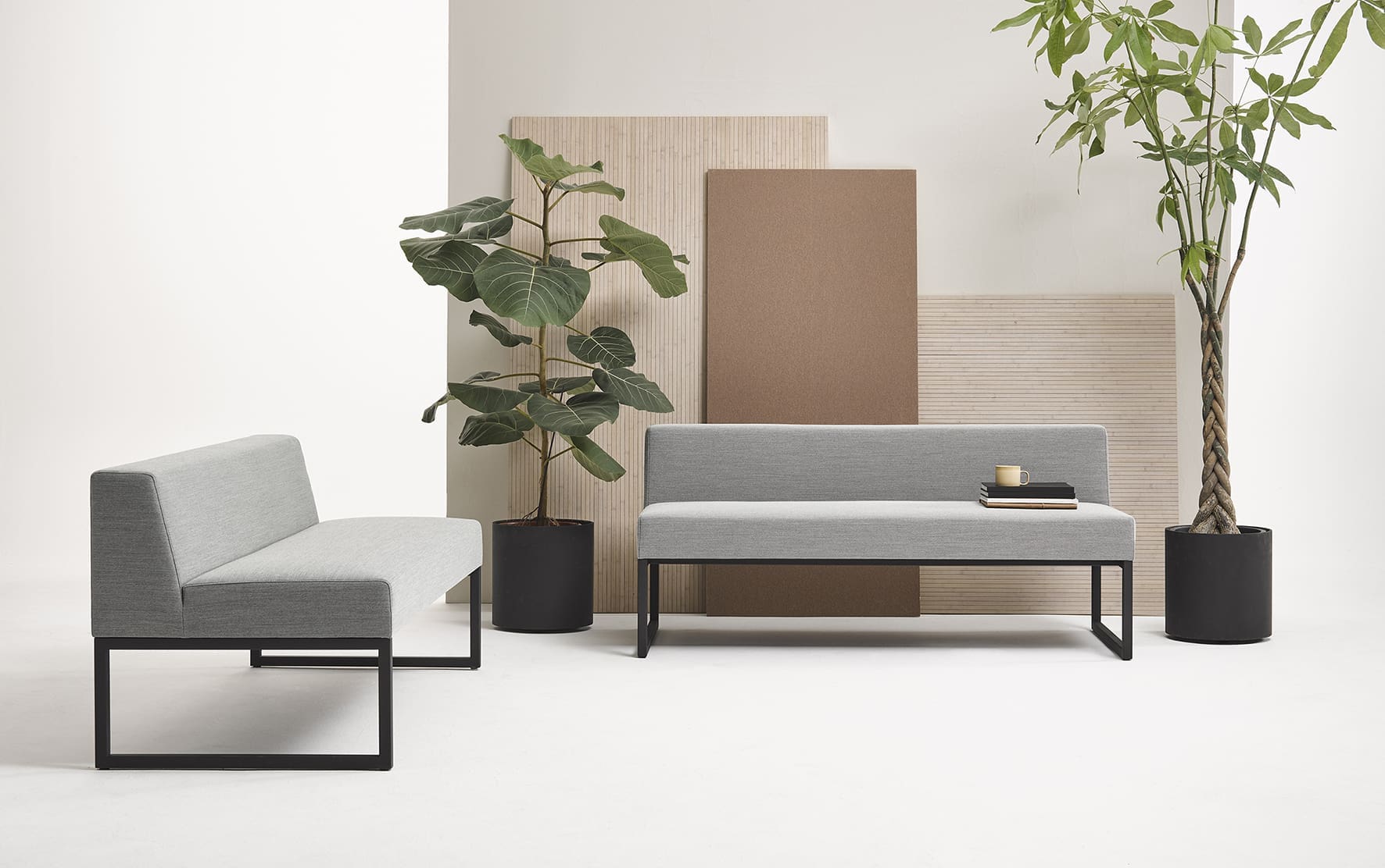 Diner is a simple sleekly designed sofa, ideal for waiting areas, catering establishments, receptions, company restaurants and canteens. Diner is available as 2, 2.5, 3 and 3.5 seater with a maximum width of 210 cm. Diner can be placed in a variety of ways within a space: tightly between two walls or panels for a compact seating area, back-to-back as a train bench or as a stand-alone object. Diner is available in a low and high variant.
