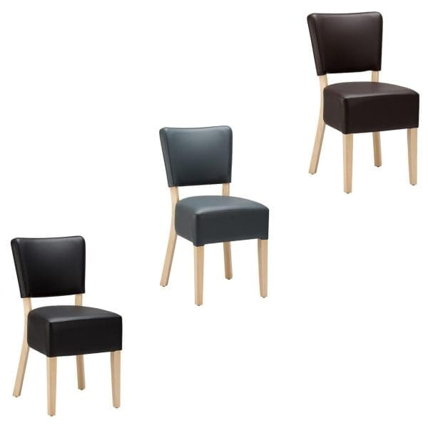 Our very popular Alto FB range features a strong chair frame manufactured from Solid Beech, complemented by an elegant wenge stain finish. The seat and backrest are upholstered in dark brown Veneto faux leather, providing both comfort and durability. In addition to the dark brown option, we offer a range of other colours to suit your preference. Furthermore, a matching highchair is also available in stock, making this model an excellent choice for a variety of settings. At an attractive price point, this chair is a timeless classic that’s hard to beat. Don’t hesitate to contact us with any queries you may have.