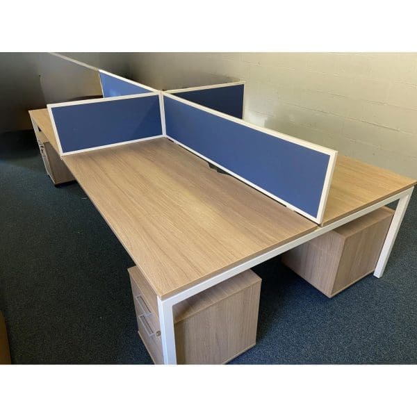 Block Of 4 Desks Inc Screens / Pedestals / Cable Trays
