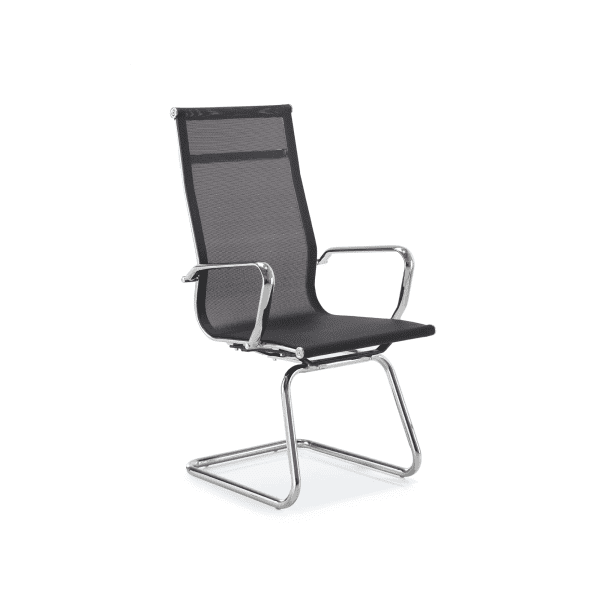 High back chrome cantilever mesh armchair