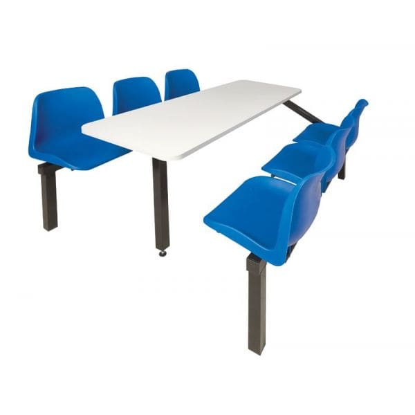 - B6FASTFD6SEB Standard Canteen Furniture – 6 Seater Single Entry – Blue Seats – H.725 W.1690 L.1580