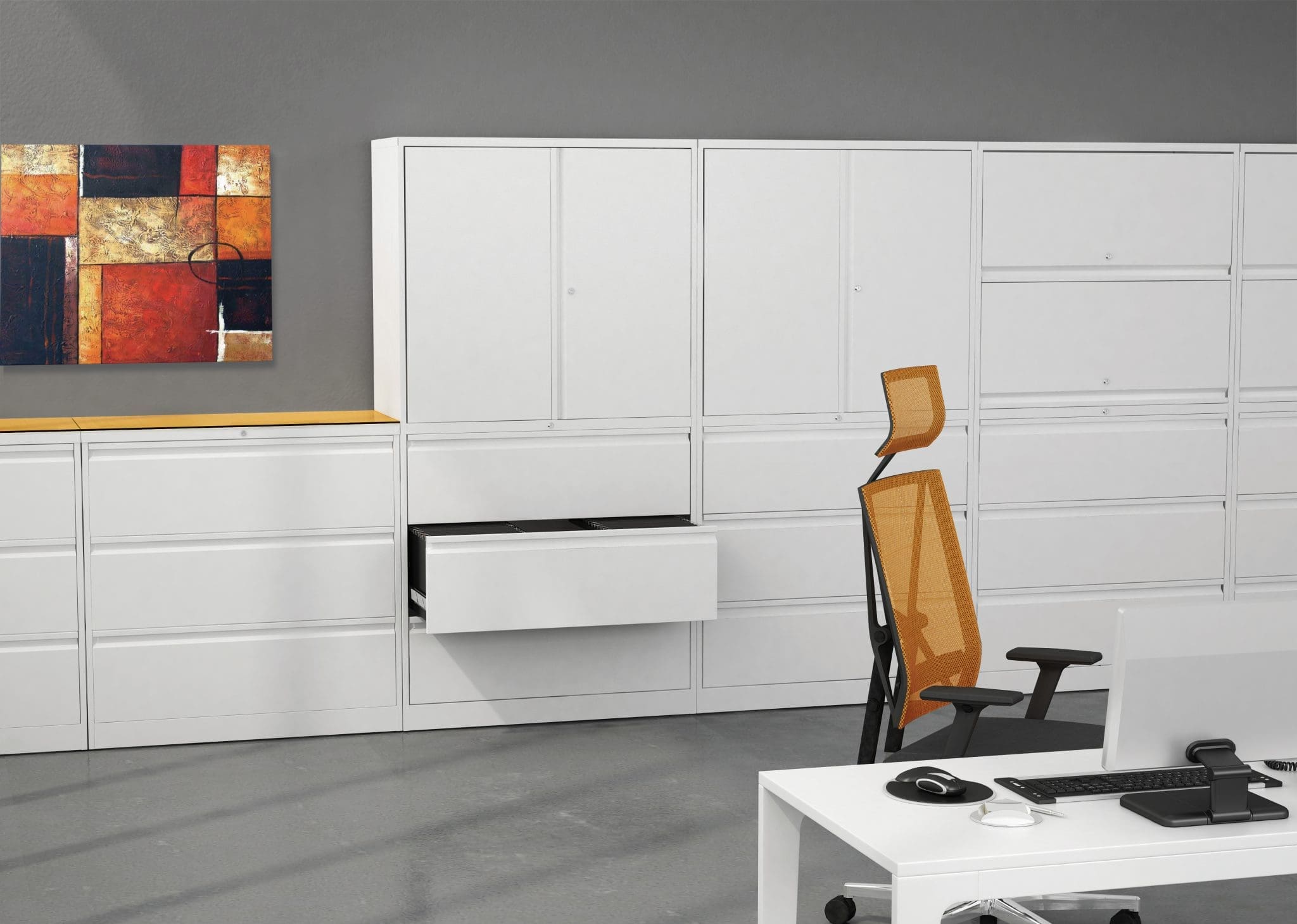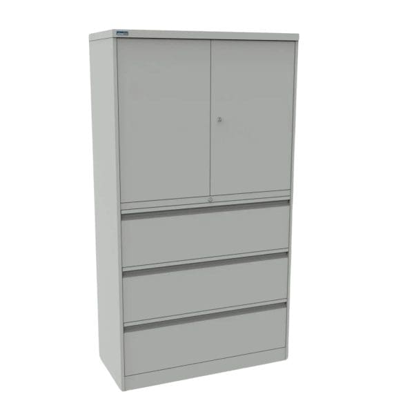 The Combi:store range offers secure storage with its reinforced doors and Undefeatable Anti Tilt Locking Mechanism. Within one standard footprint, the Combi:store range suits all filing choices, from suspended or lateral filing, to box and lever arch files.
