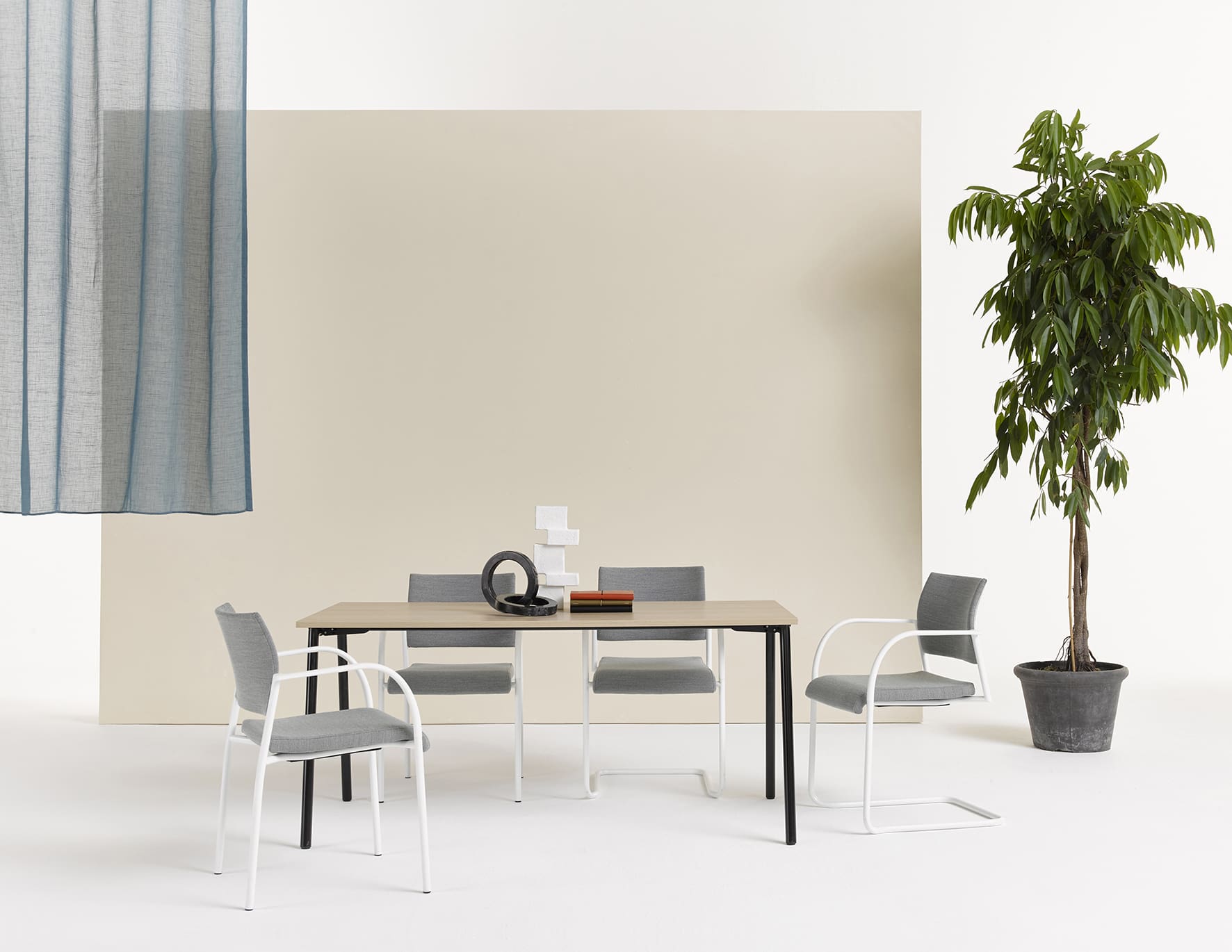 A typical all-round chair in our collection is Cooper. Pleasant seating comfort, timeless design and multifunctional. Cooper is suitable for any place and any time. Cooper’s pleasant seating comfort is mainly due to the moulded backrest and the generous seat. Cooper is available as a four-legged and a cantilever model with a choice of plastic or upholstered back and seat. The base is finished in a powder coating or optionally in chrome.
