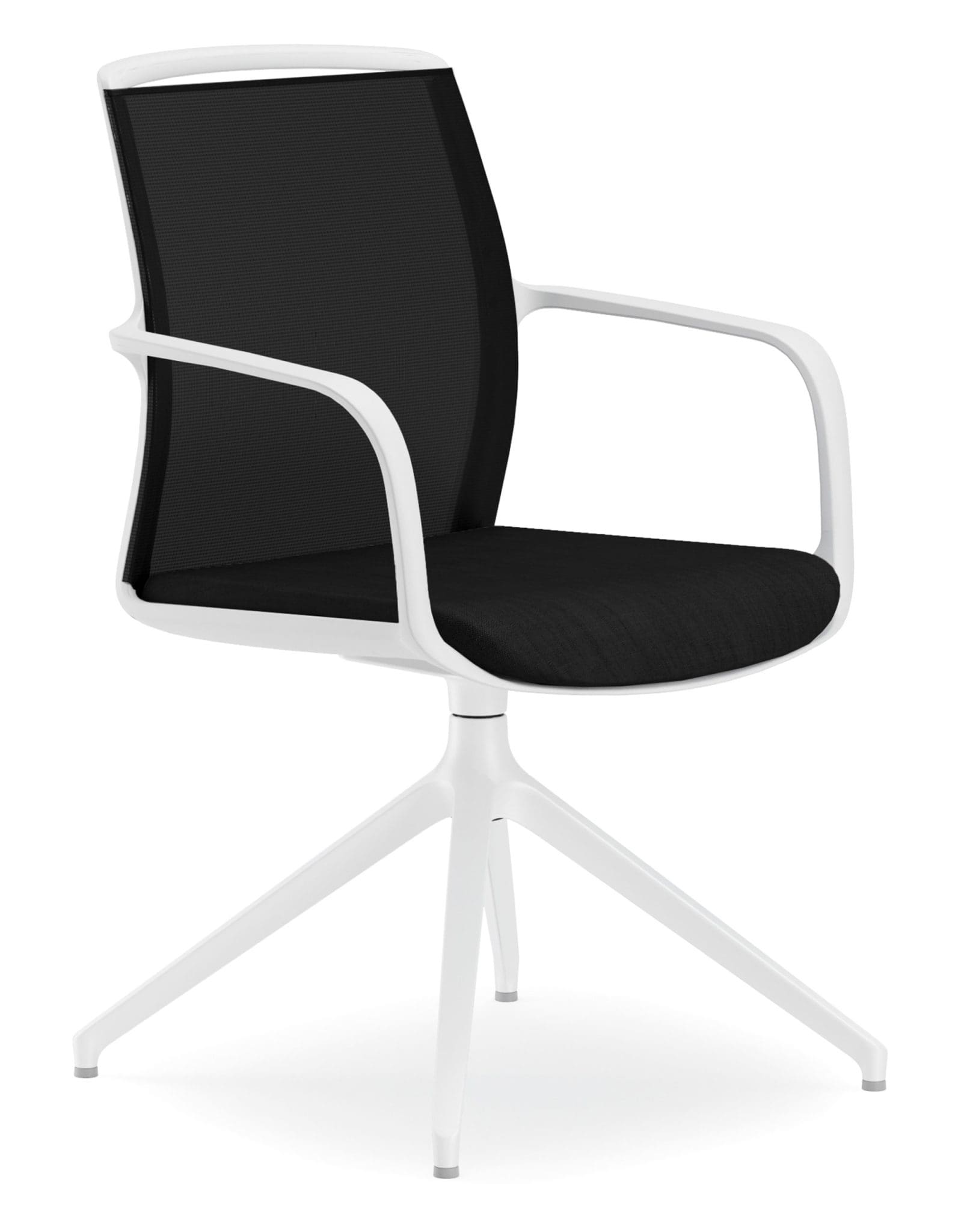 A modern and durable multi-purpose chair with breathable, curved black mesh back that moulds to the user for increased ventilation.