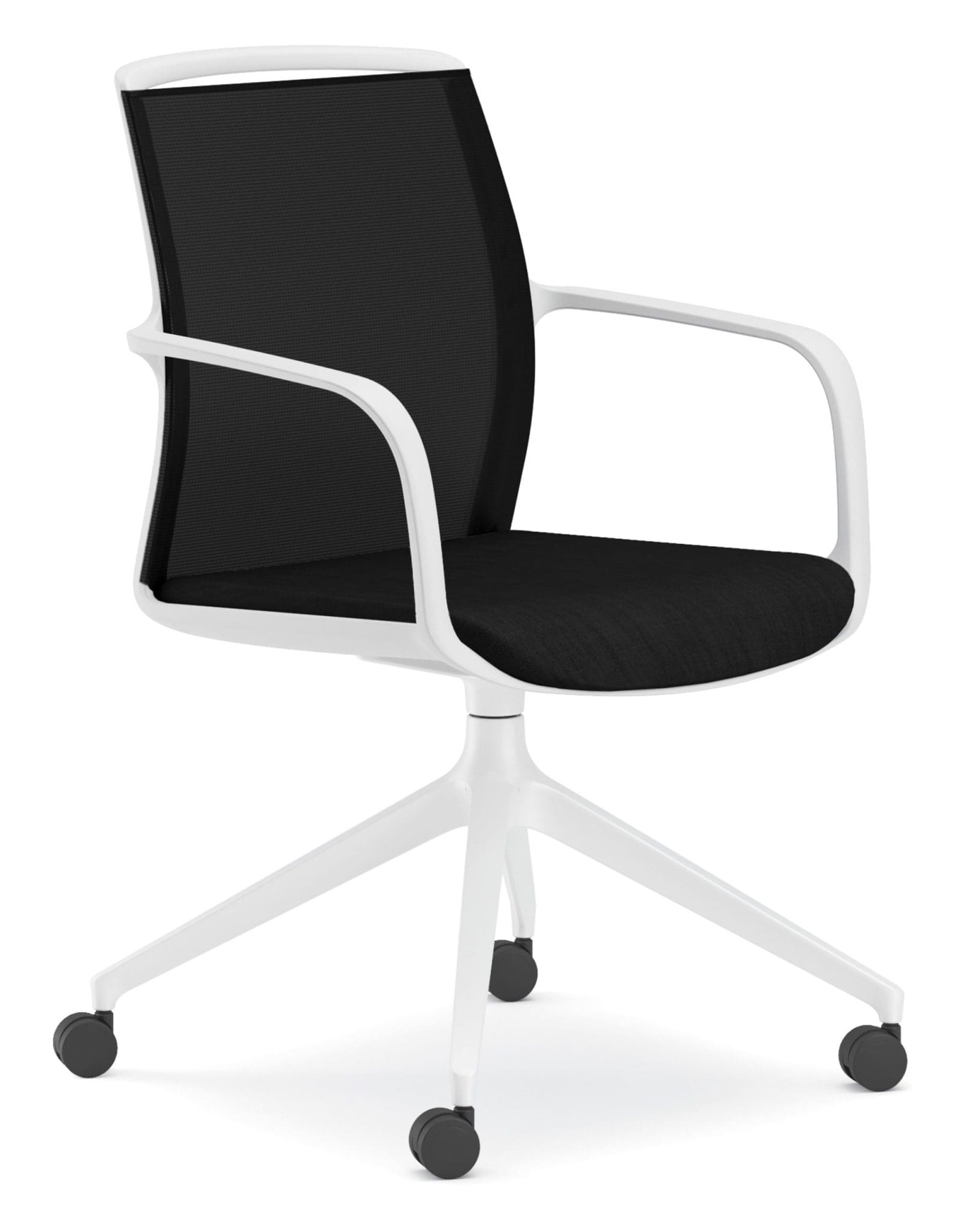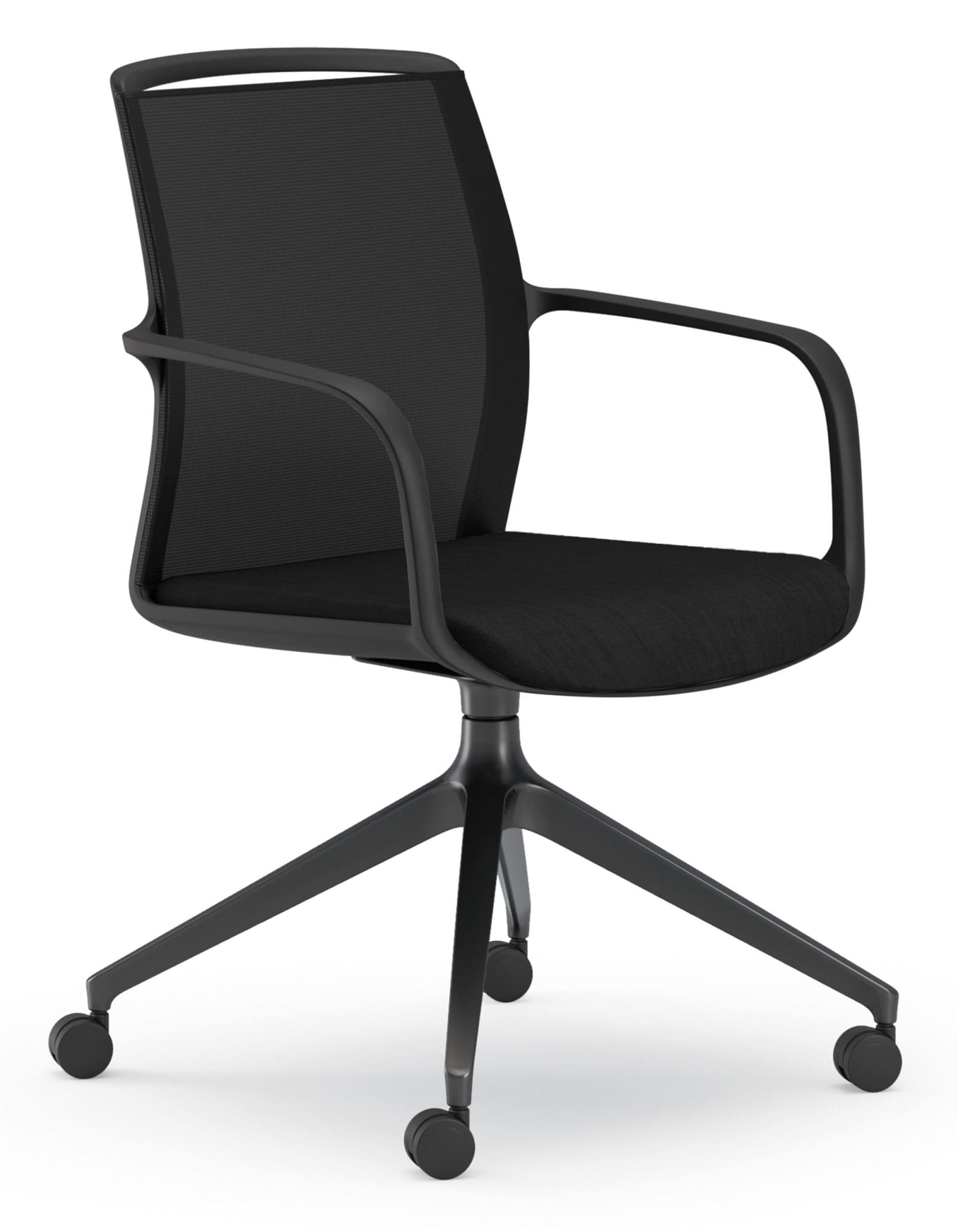 A modern and durable multi-purpose chair with breathable, curved black mesh back that moulds to the user for increased ventilation.