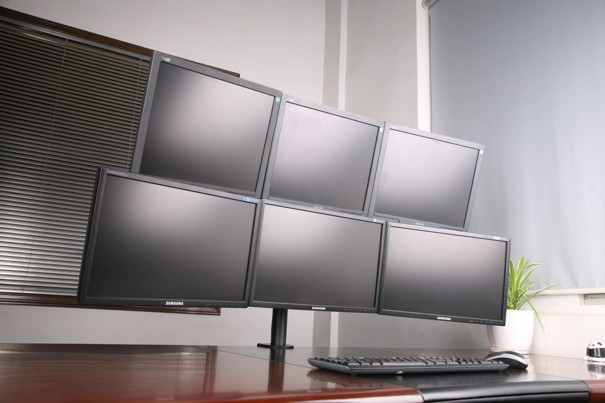 Create the ultimate multi-tasking display with our heavy duty three and six screen monitor arms.