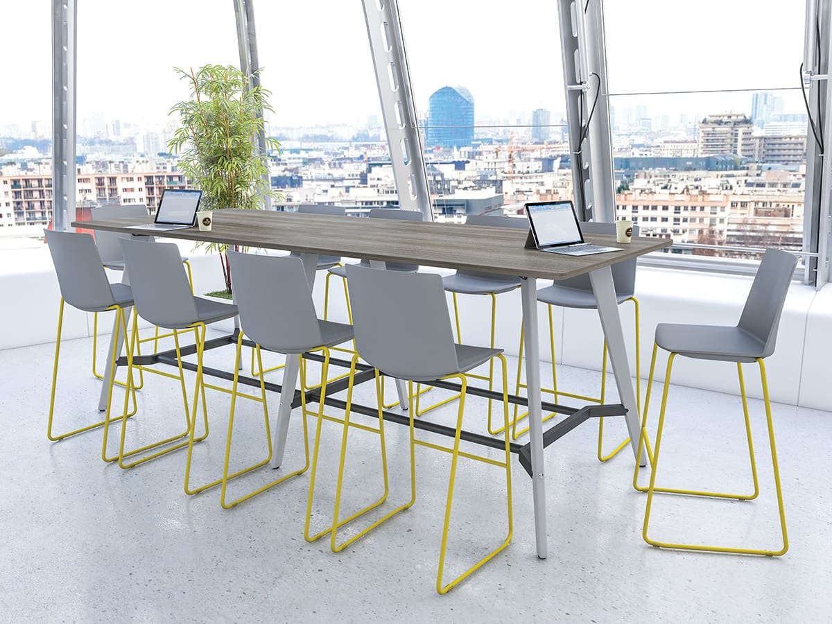 Evolve is a modern, versatile range of boardroom and breakout tables. Available with Solid Oak or a painted RAL finish legs, Evolve provides the ability to create unique colour combinations to enhance any space. Dining, poseur and reception table heights as well as an extensive selection of table top shapes and sizes offers the flexibility required to bring coherence to an interior, creating a satisfying environment for all.