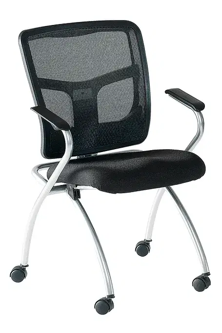 | Mesh back armchair with silver frame, fabric seat and black polypropylene castors | |