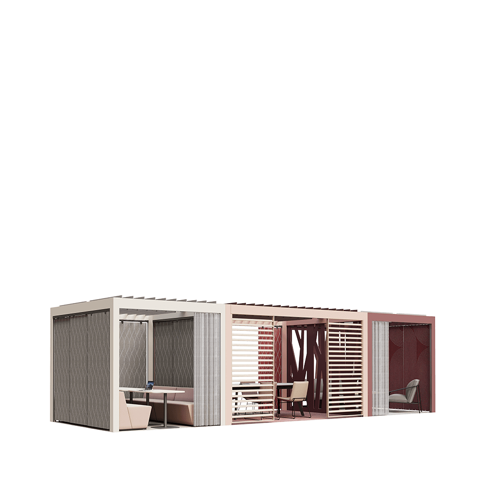 The development of Rooms began in the summer of 2014. Today, it remains highly relevant as businesses seek adaptable tools. Rooms is designed to define space while offering flexible, free-standing structures that can be reconfigured for both formal and informal workspaces, allowing for socialising, focusing, and collaboration.