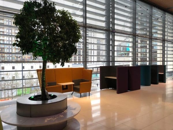 The Georgia seating pod is a stylish and intimate space for 1 person. With sharp angles and a unique design, the Georgia is guaranteed to spark conversation in any workplace. Upholstered with high quality fabric, it’s durable as well as attractive. The high back panels and soft upholstery add privacy and acoustic dampening to external noises. Add a table for a complete work station.