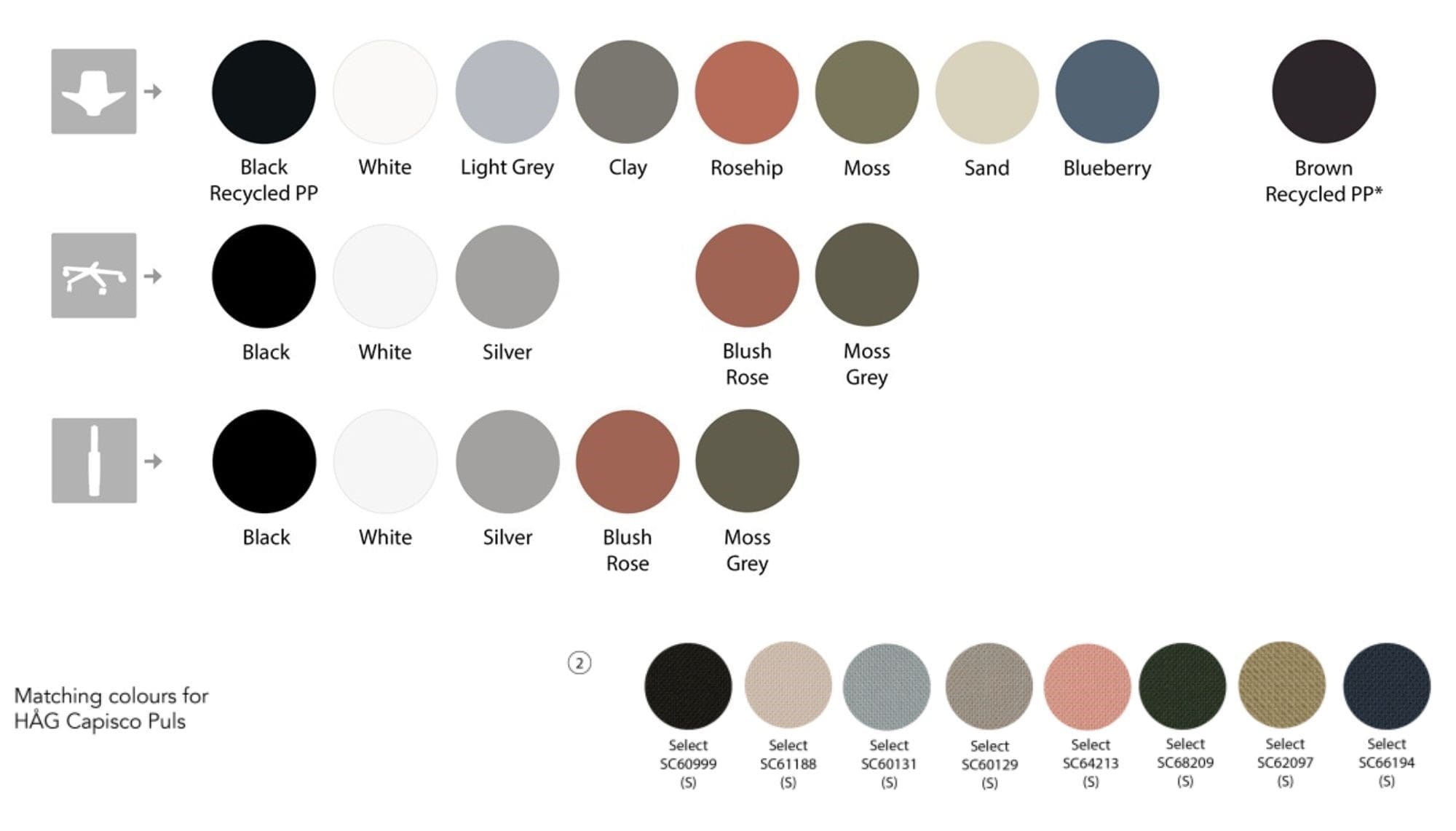 Environmental data given apply for model with brown or black recycled plastic (PP).