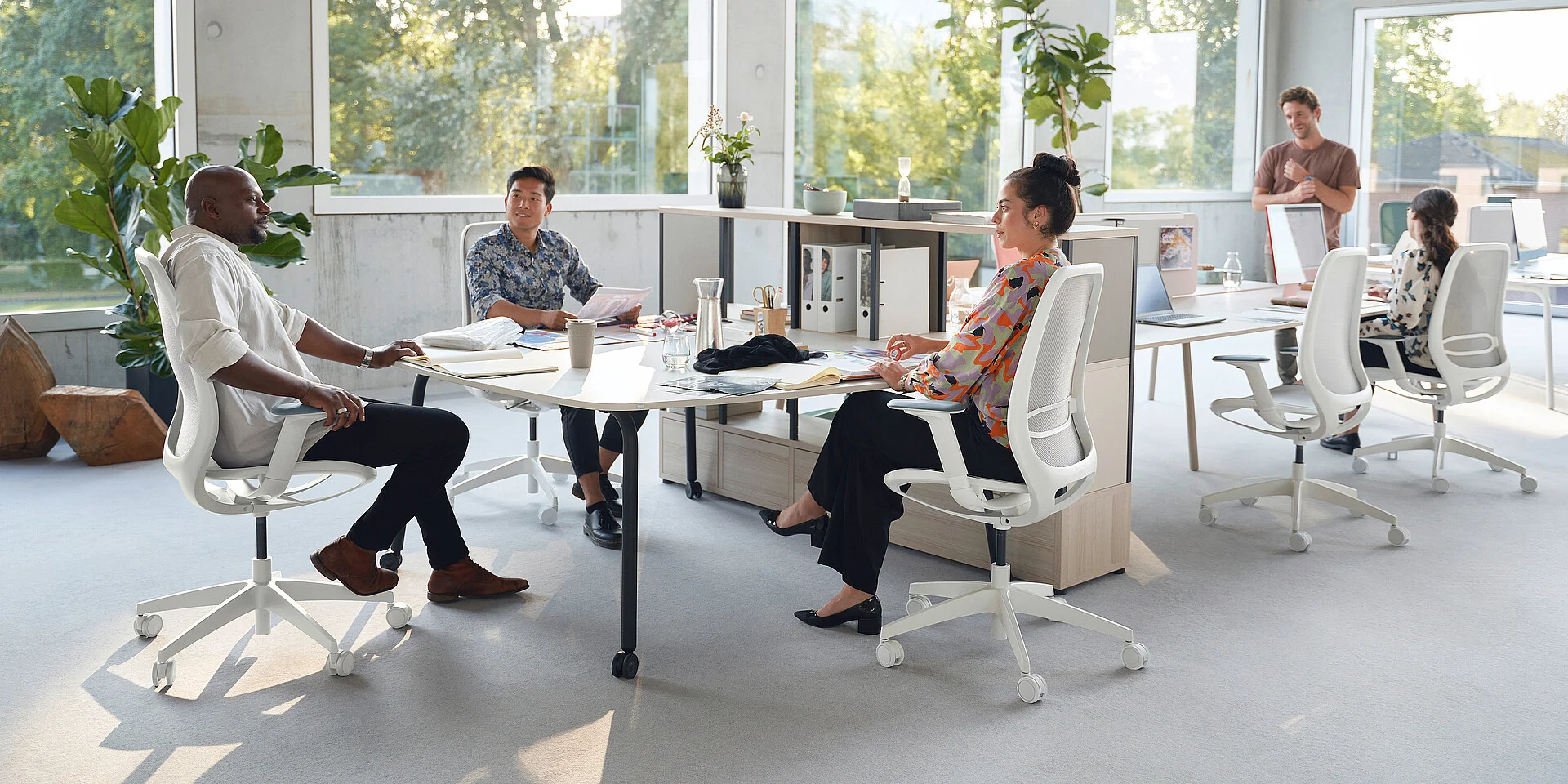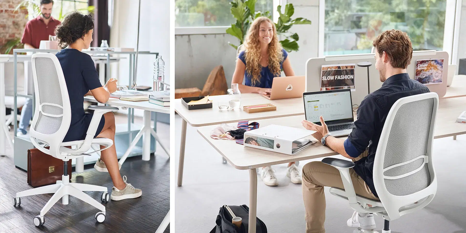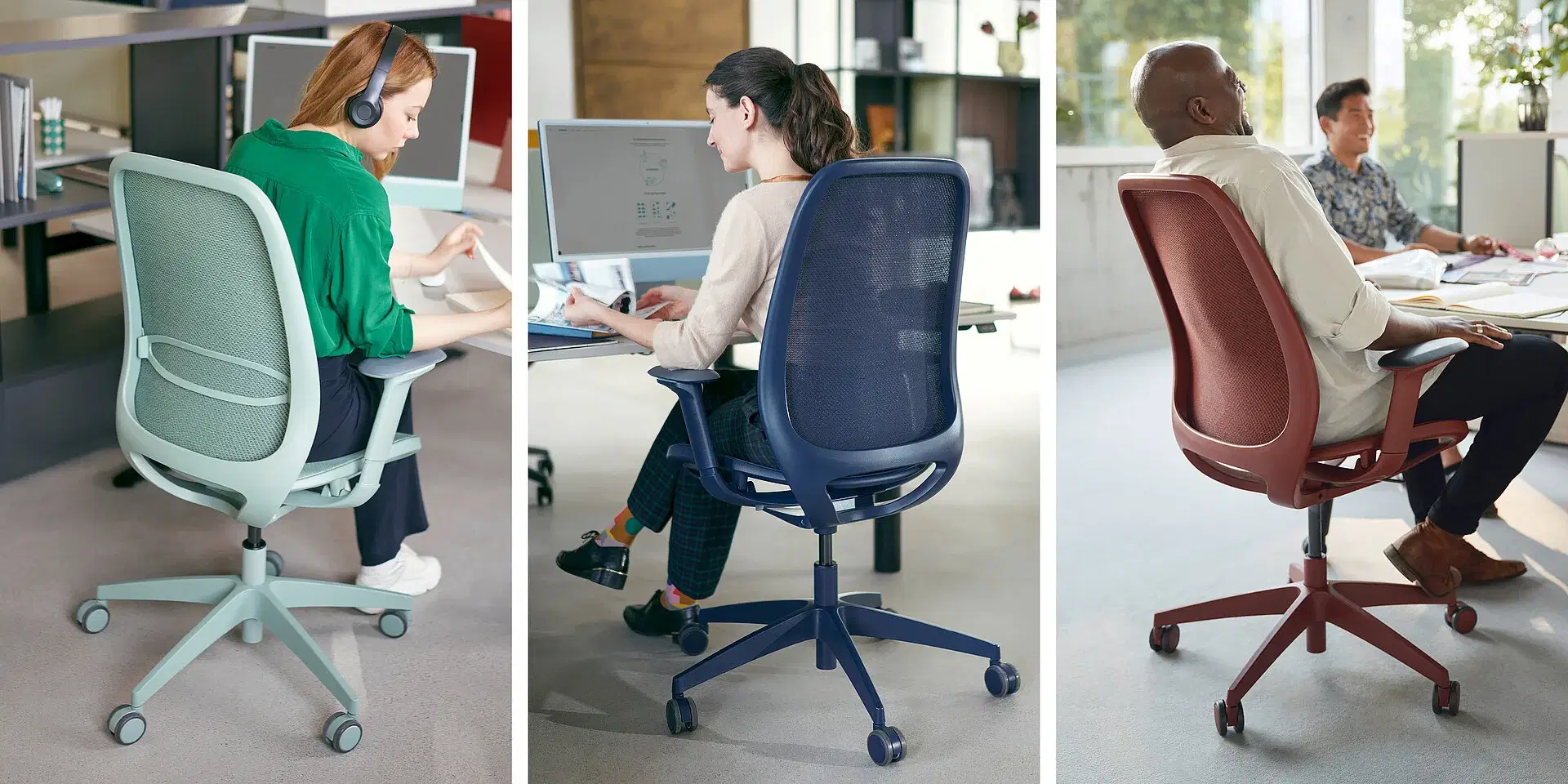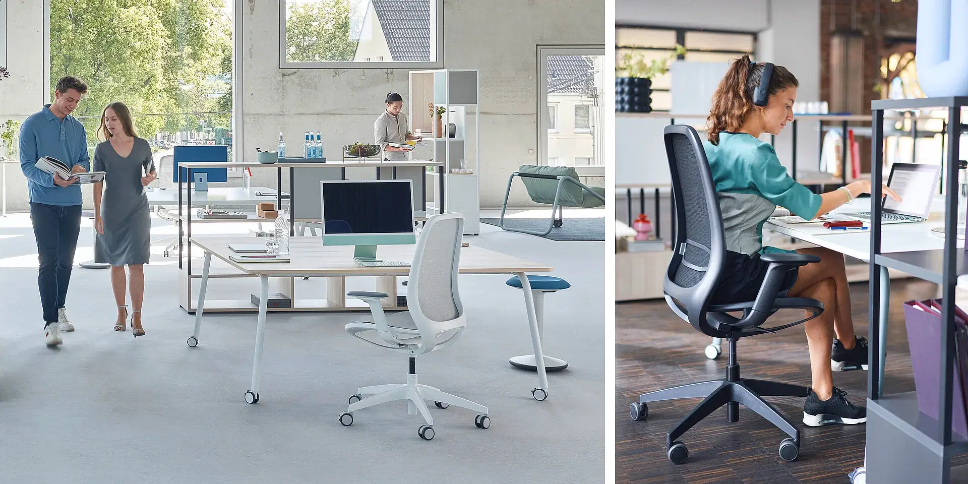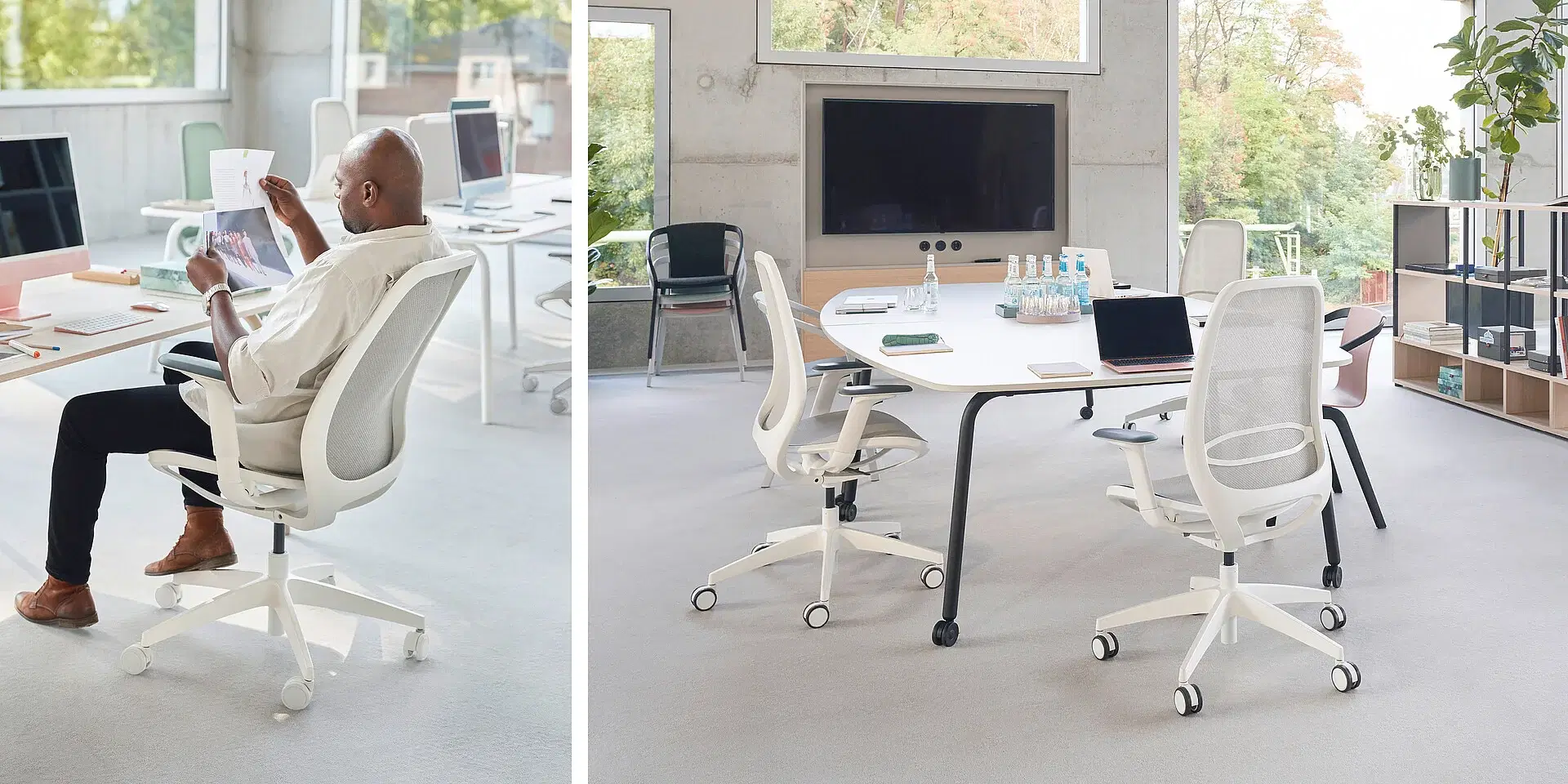 Keeping cool is no problem with se:air. It goes without a classic full upholstery. Instead, it has an air-permeable mesh membrane in the seat and backrest, thus ensuring breathable comfort. Different sitting positions and movements are optimally supported due to the changing degrees of hardness in the membrane. Heat accumulation at pressure points, pressure sores and slipping around on the seat are thus easily prevented.