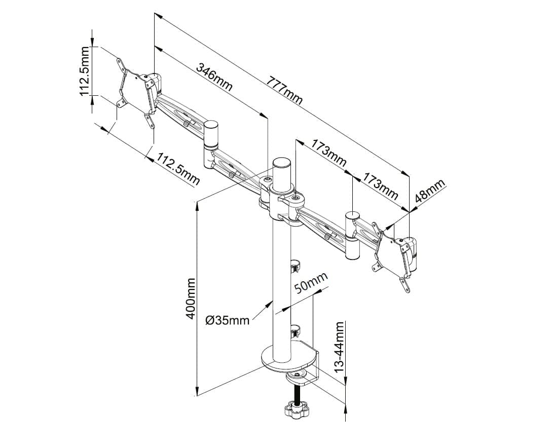 Includes pre-assembled hand-turn desk edge clamp and handturn