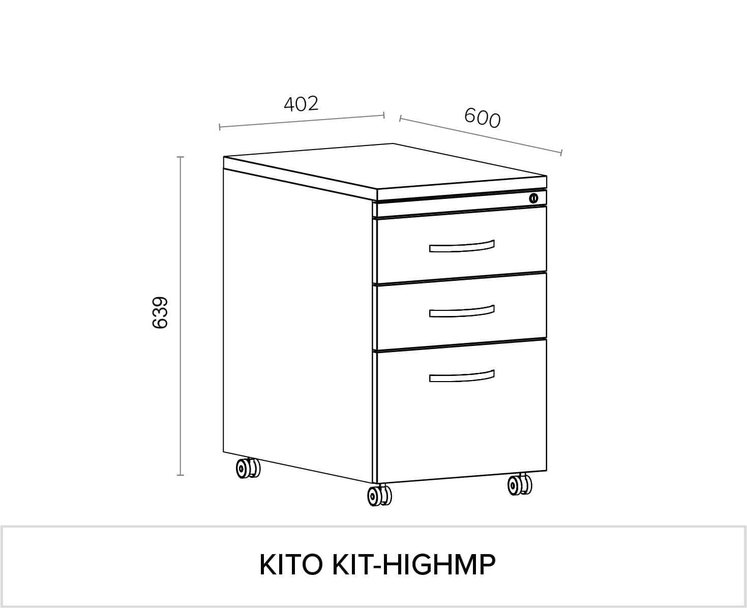 Kito Contract High Mobile Pedestal 3 Drawer 600D x 639H