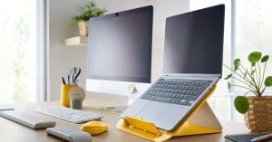 The Leitz Ergo Cosy Laptop stand is suitable for laptops from 13″ to 17″.