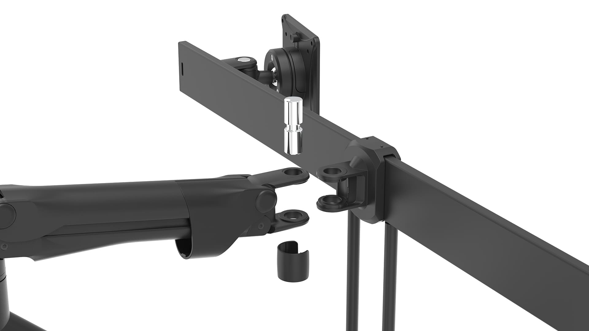 Our popular Levo monitor arm has been updated with a unique connector pin system that makes it easy to reconfigure the arm for two screens, using the updated dual screen mount.