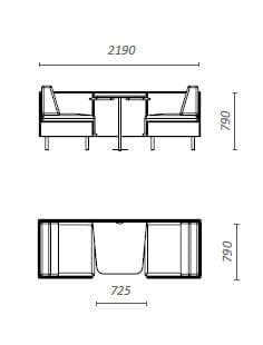 LOU-2D-LBP-38RS-MT mono tone – 2 person open booth with table 790 x 2190 x 790