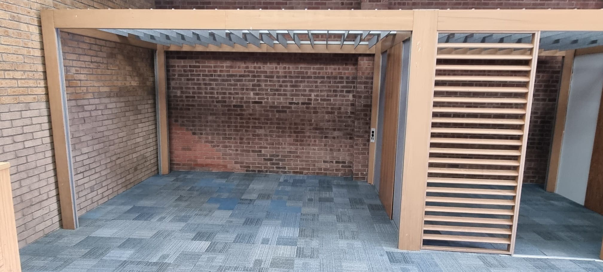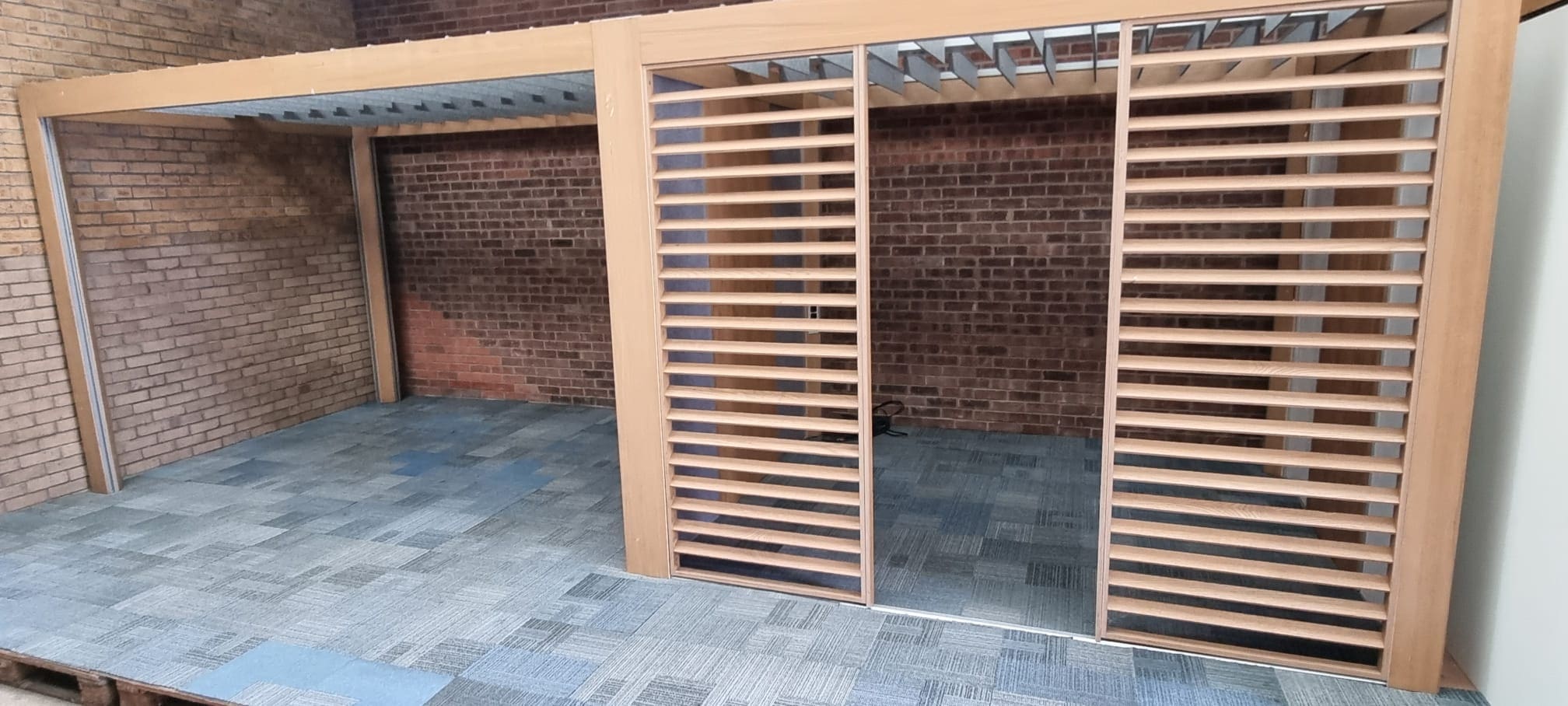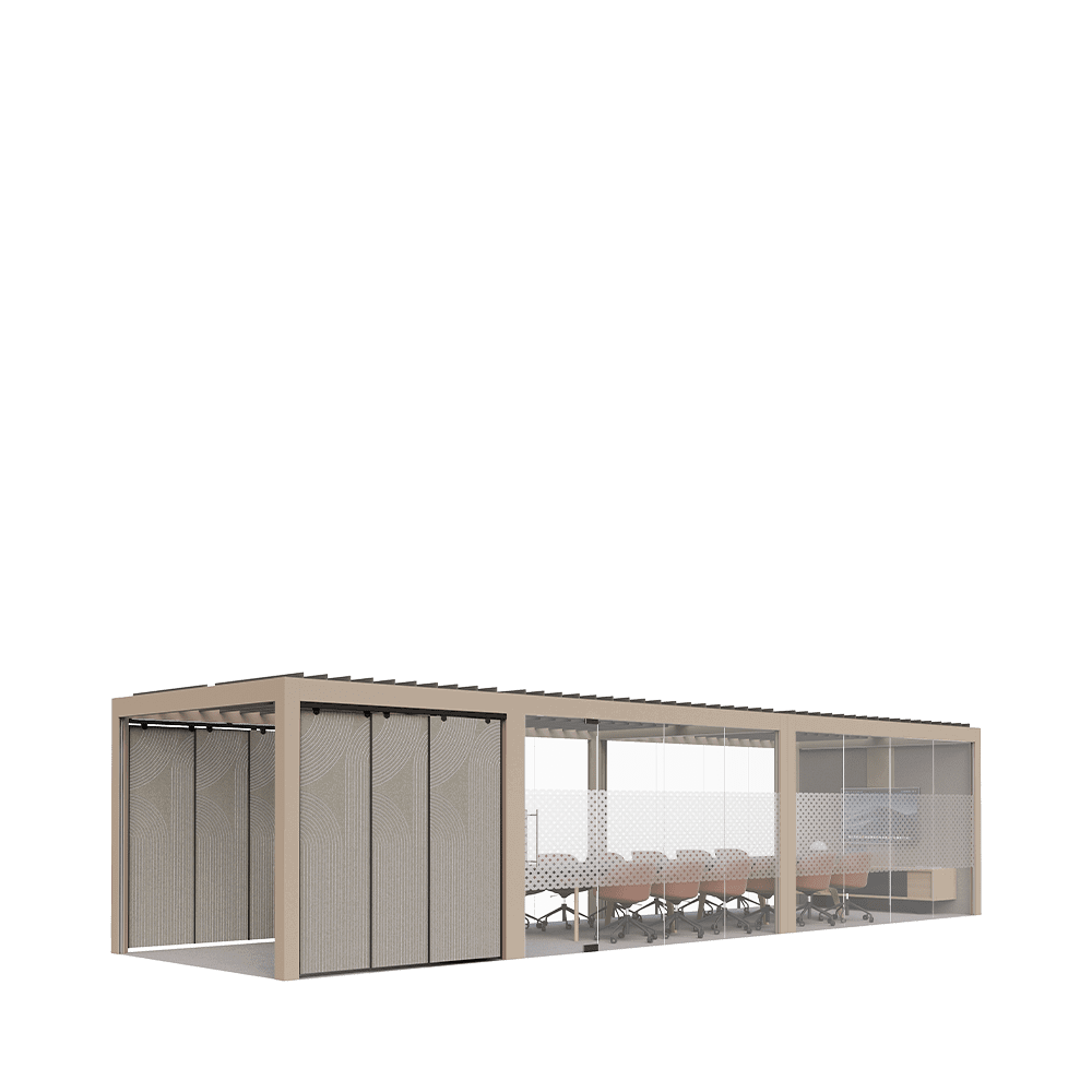 • Post and beam system for defining spaces without walls.  Aluminium structure with customizable oak or coloured cladding.  Plug & Play electrification through a single power socket, with flexibility from floor or ceiling.