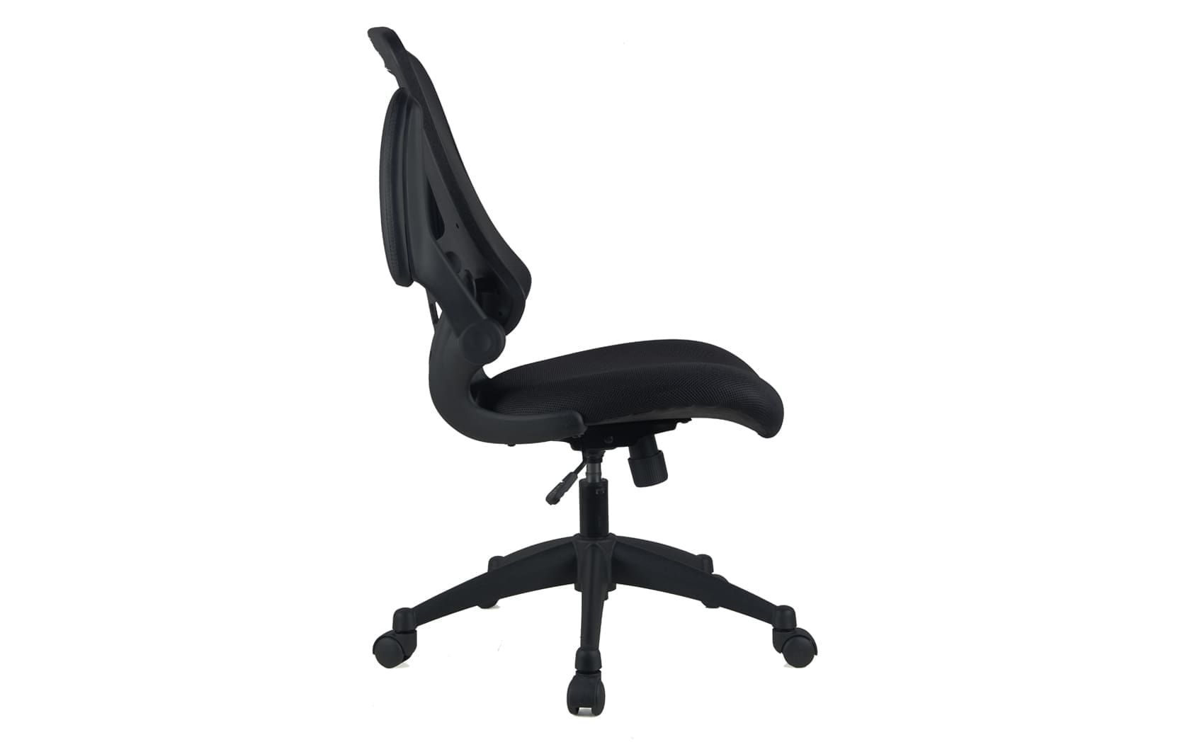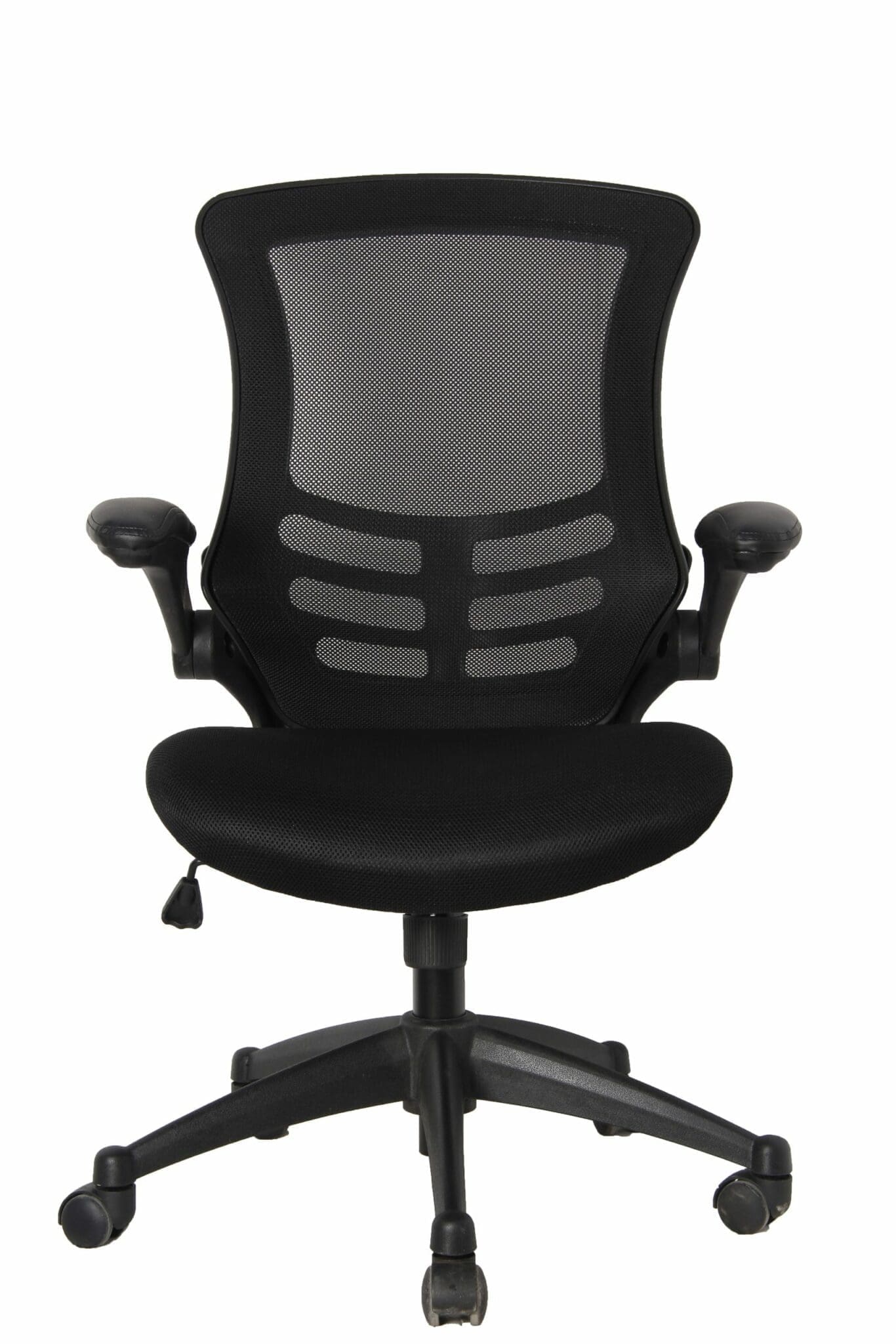 Additional Notes Cushioned Airflow Mesh Seat with Mesh Back Nylon Shell & Base with Black Castors Gas Lift as Standard 90° Pivoting / Fold-back Arms Soft Foam & Faux Leather Armpads Tilt Lock with Tension Control Only Available in Black Mesh Fabric Dimensions Seat H: 450 – 550mm Arm H: 700 – 800mm