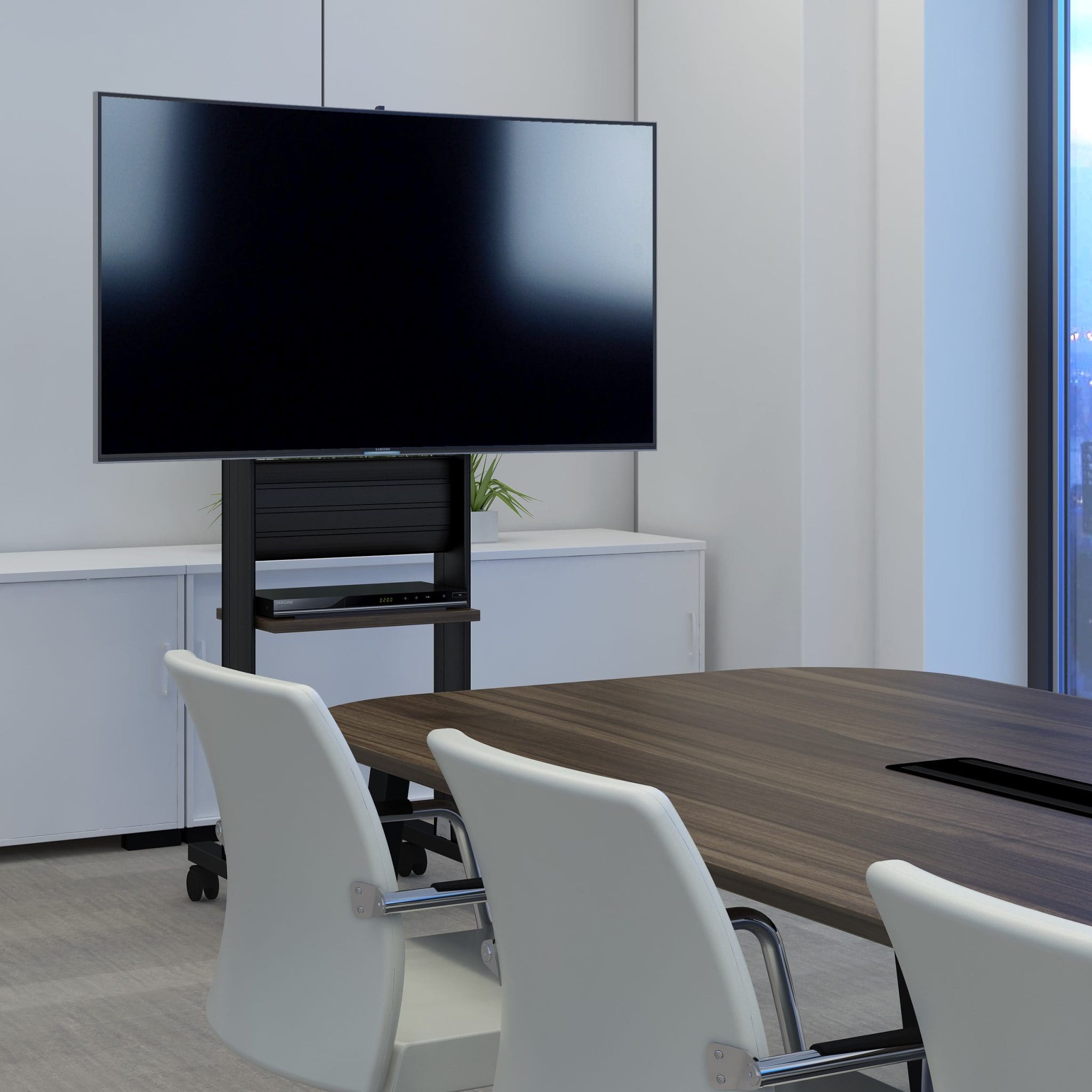 Suitable for meeting spaces, this mobile TV unit integrates technology with a vertical wire management system and is capable of accommodating a TV screen up to 56” with a universal bracket fixing. The locking castors allow for securing the unit into position and are easily released for mobility.