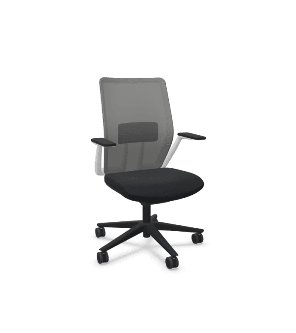 The mesh task chair is available as black with black mesh, white with black mesh or grey with grey mesh while the upholstered and executive versions are available in black. Choose from distinctive fixed armrests or multifunction armrests and a black or polished five-star base with castors.