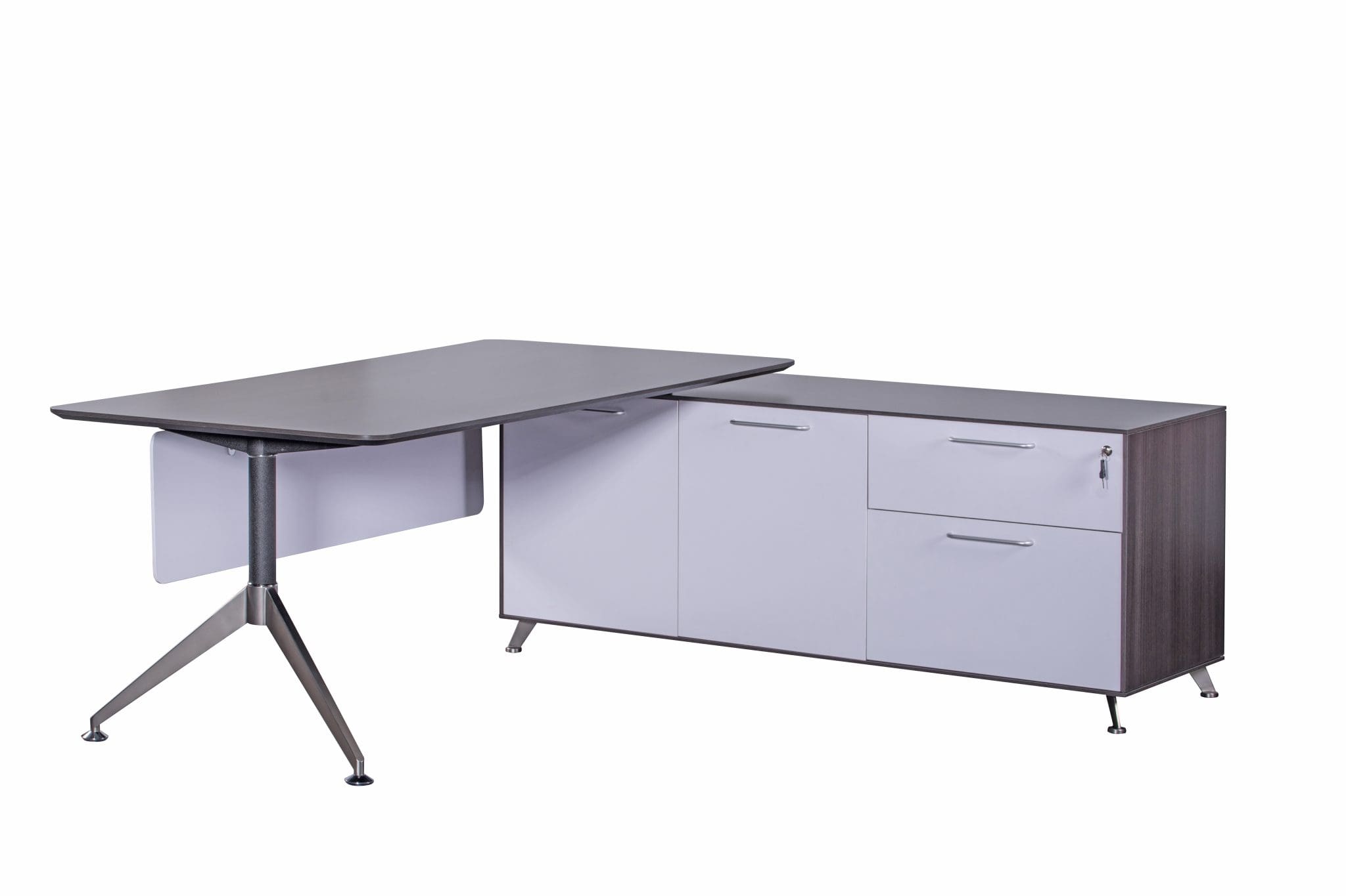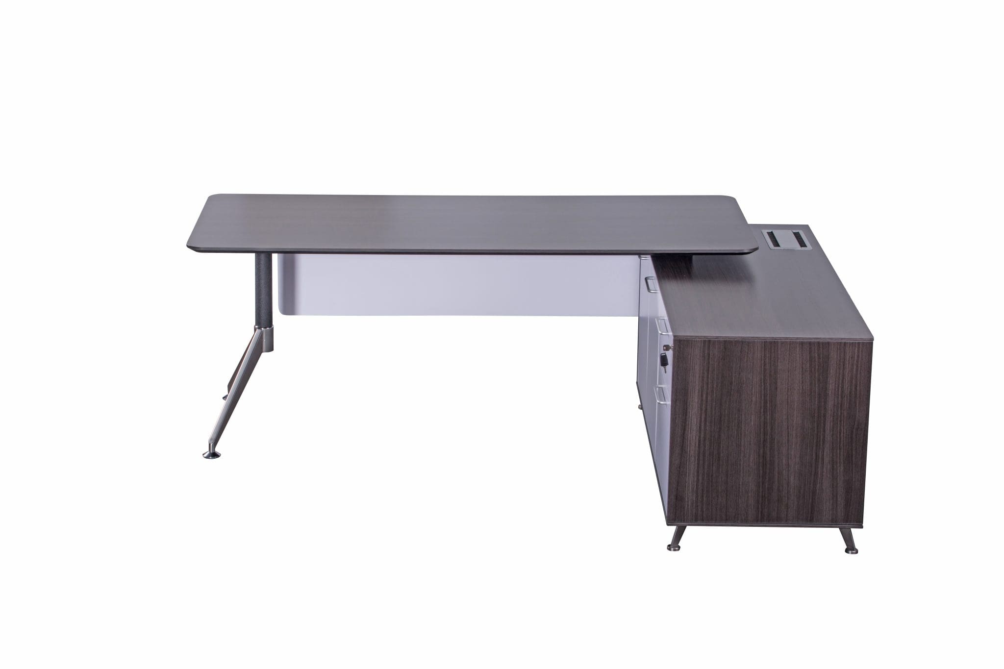 NER-190DK/L |Size: 1900mm | Nero chamfered Executive Desk with Left Hand Return in Anthracite & White / American Black Walnut | 2150W x 1850D x 750H