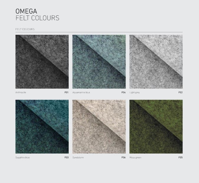 In Casala furniture, as much recycled raw material as possible is used to minimise the impact on the planet when it comes to mining new materials. The Omega I frame contains 40% recycled steel, which is currently the highest percentage possible to guarantee a high quality and strong product. The Omega seating range has felt shells made from up to 100% recycled PET, these are attached to the frame without glue and tape.