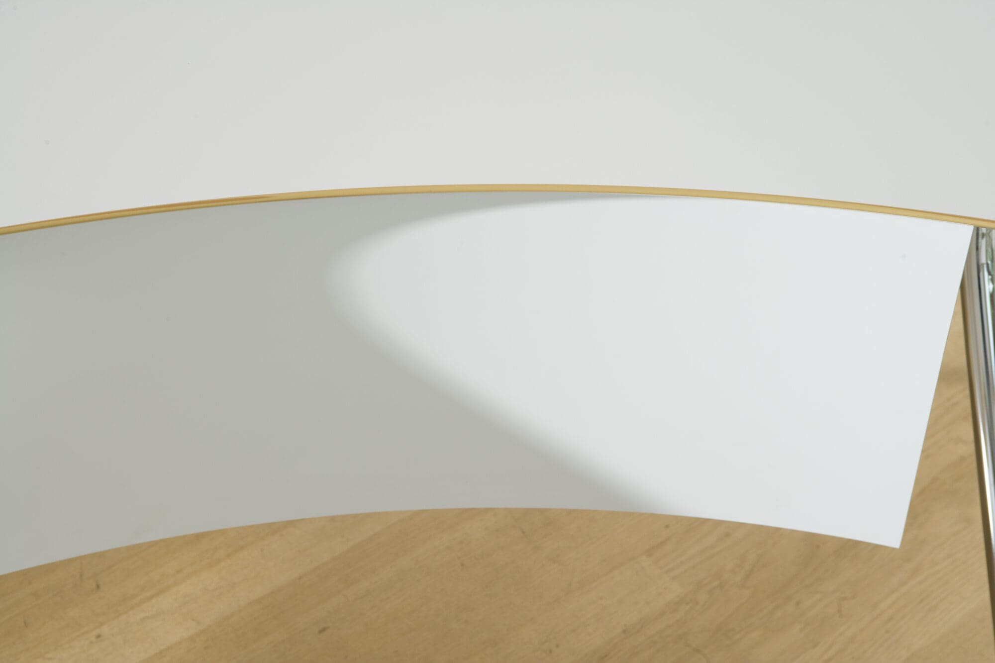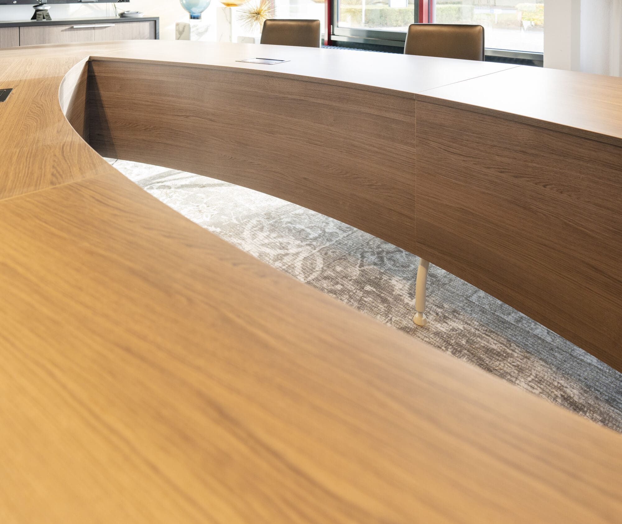 - Open tables with curved front panels with a height of 50 cm, executed in double sided HP