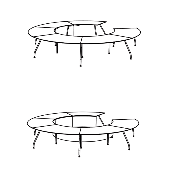 • Open tables with curved front panels with a height of 50 cm, executed in double sided HP