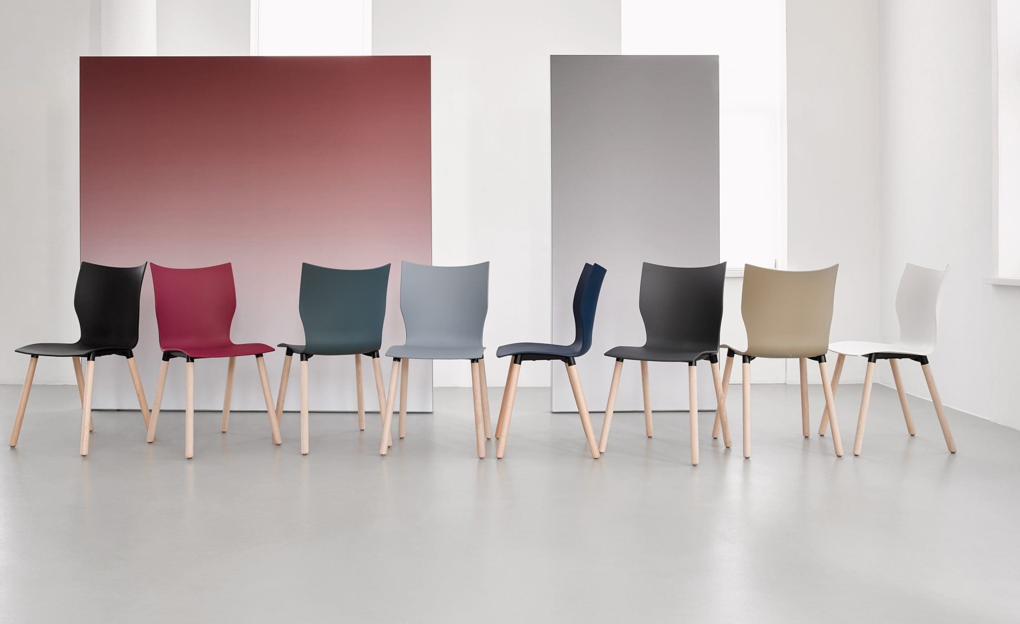 > Wide application because of 5 types of frames and shells in beech wood, CPL, plastic and upholstery