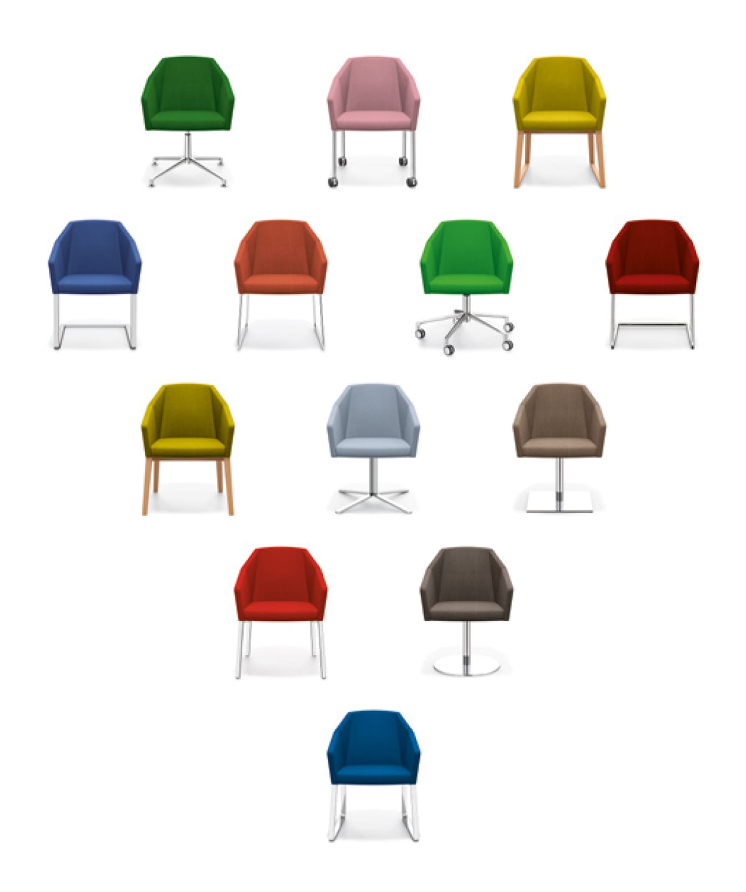 Always alike, and slightly deviating at the same time, that’s Parker, the multifaceted one. One time an armchair and then again a chair, at home in an office, then in a hotel and then in public buildings again. Its shell is designed in such a way that it can be combined with different frames ultimately resulting in a variety of models. What doesn’t change is its distinctive shape, which always remains the same and provides unity in the multitude of models and applications.