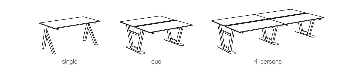 • Duo, 4/6/8 person workstations are placed on a stable base plate (94,5 x 25 cm)