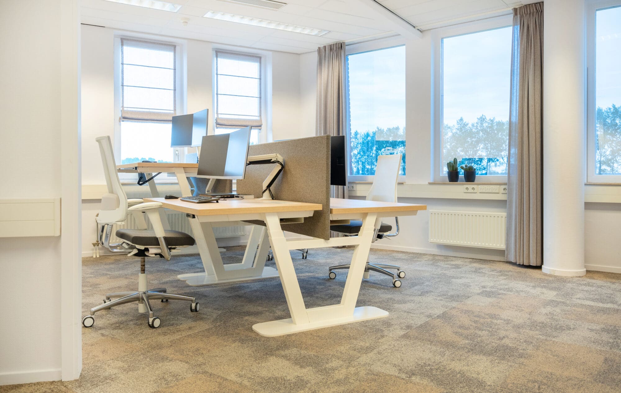 With it’s unique and sophisticated angled legs, ParQ is a real eye-catcher. ParQ seamlessly blends style with practicality, offering a workspace that inspires productivity and creativity. The fixed bench desks can easily be combined with the ParQ sit-stand version.