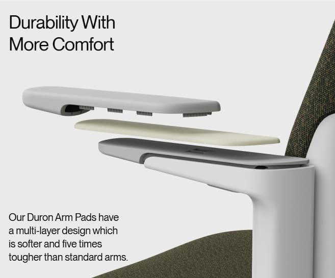 Equally as innovative as Path’s design is its FormSense Eco KnitTM, a mesh-like textile made from upcycled plastic bottles that conforms to the body, providing self-adjusted lumbar support and a tailored fit to every user, regardless of height or weight.