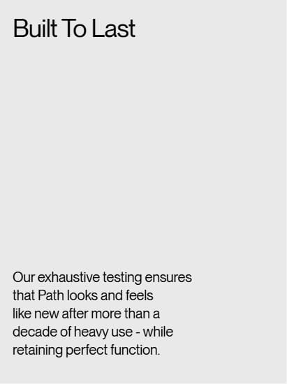 Each Path contains a patented Gravity MechanismTM that uses bodyweight rather than bulky controls. As you sit, the mechanism engages. When you recline, it gently lifts, so your body becomes the natural counterbalance, and is firmly supported wherever it stops. This creates virtual pivot points that allow Path to move with you in complete harmony.