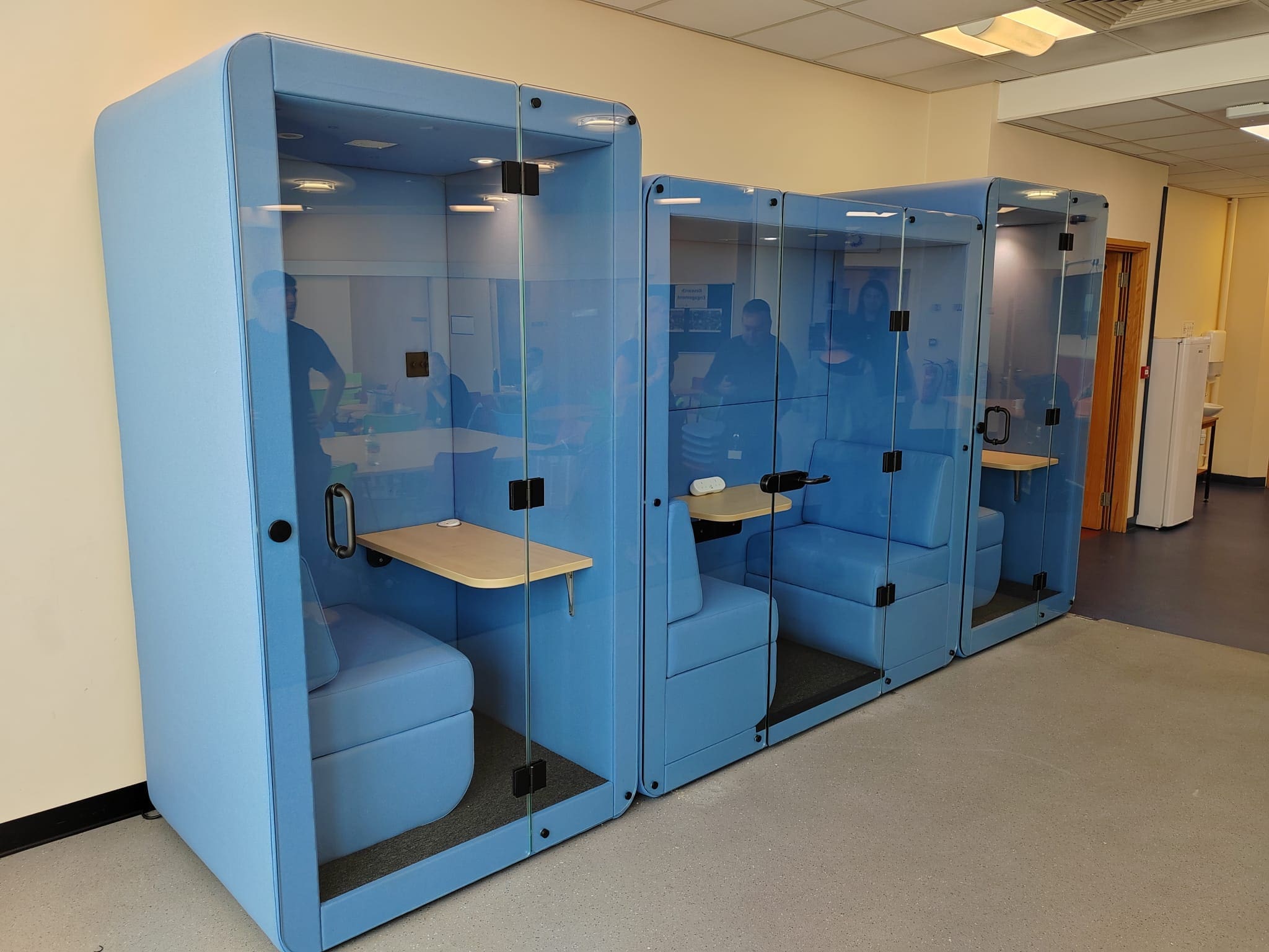 There are various standard and optional extras with the phone booth or work booth products including: