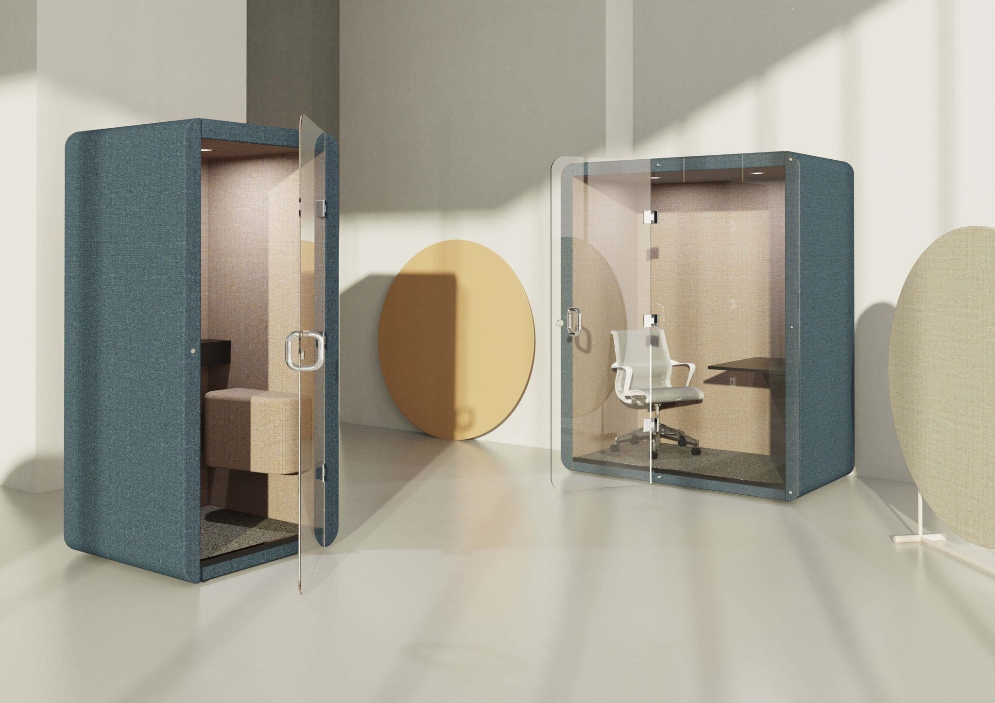 Penelope is a family of personal meeting pods that take private phone / video conference calls away from a noisy office.