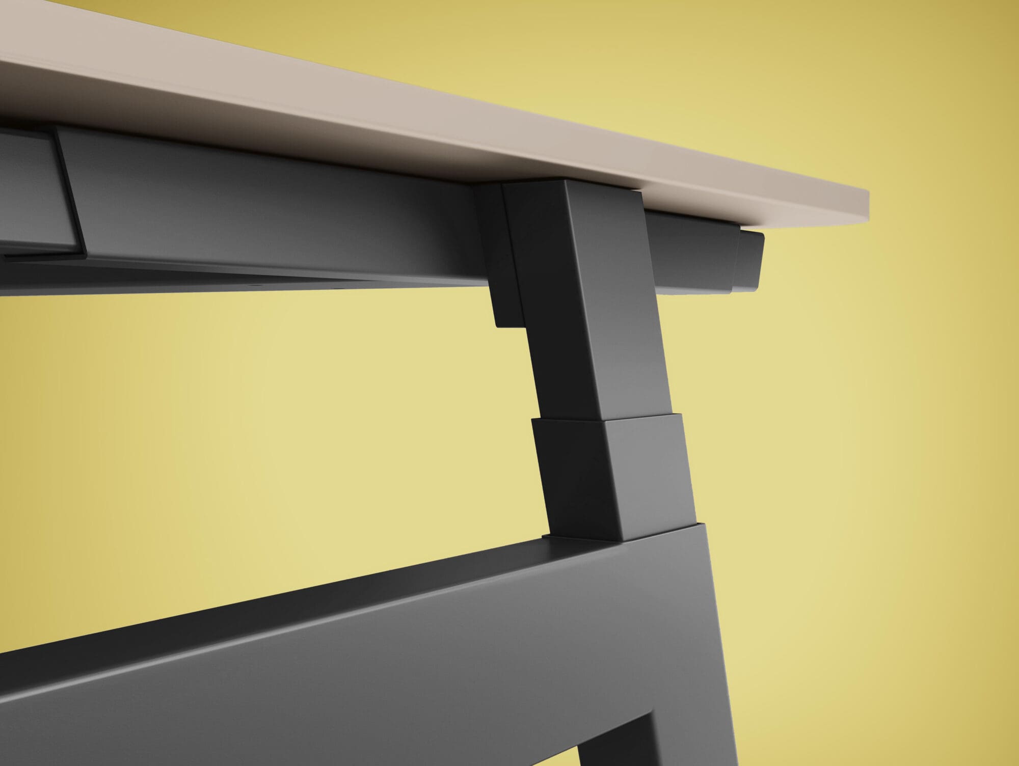 - Synchronised adjustment of worktop depth and height, despite a slanted position of the leg the worktop adjusts vertically in a straight line