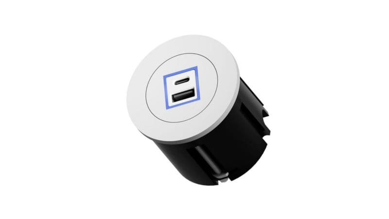 It seamlessly integrates into desks, panels and soft seating areas, providing optimal connectivity while conserving space.