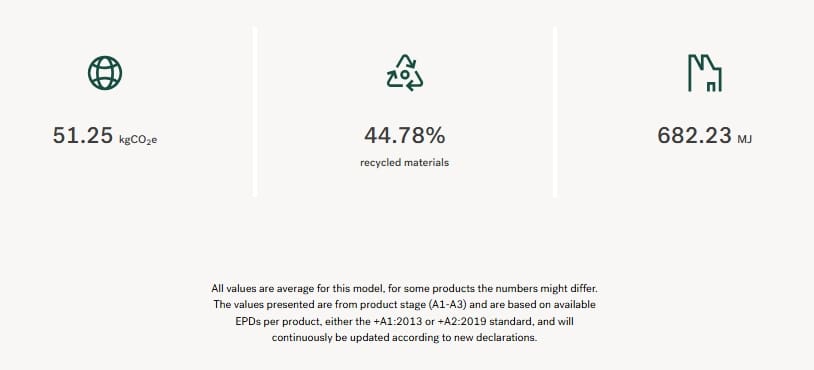 The backrest parts – the rear upholstery frame and the front frame – are made of polypropylene (PP) containing 80% recycled material, while the main frame is made of polyamide (PA) with 65% recycled material content,