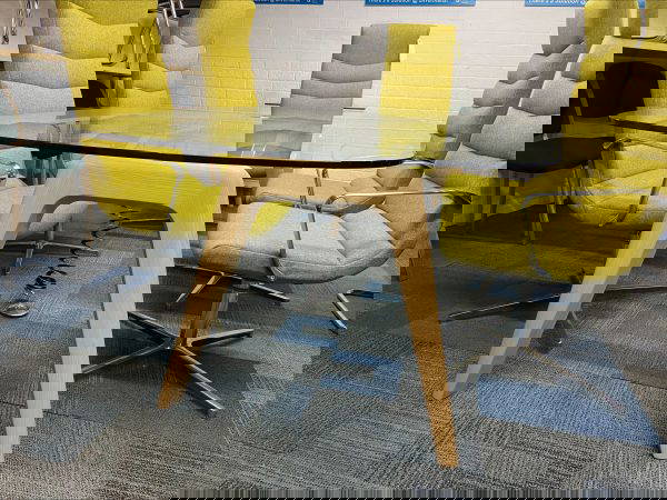 Stylish Italian Executive Furniture, With clear glass, solid wood legs and polished chrome metal work.
