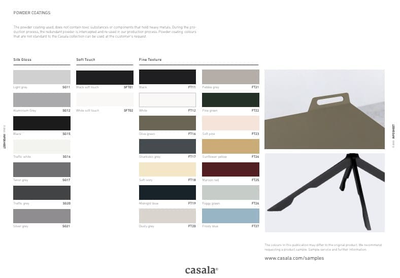 In Casala furniture, as much recycled raw material as possible is used to minimise the impact on the planet when it comes to mining new materials. The Rama frame contains 40% recycled material, which is currently the highest percentage possible to guarantee a solid product.