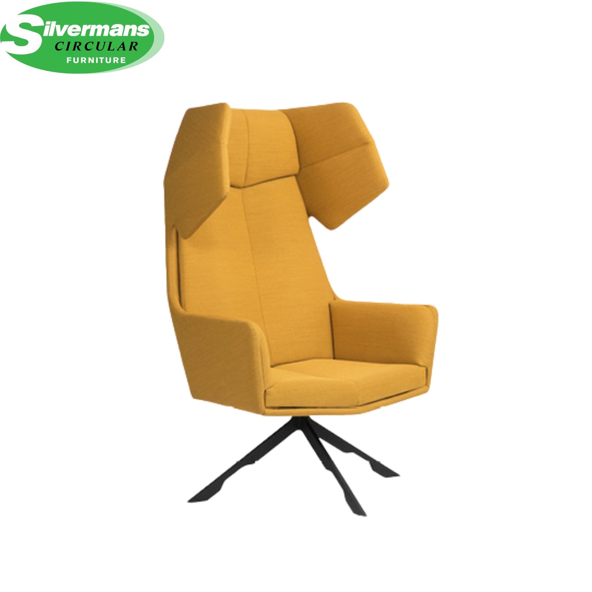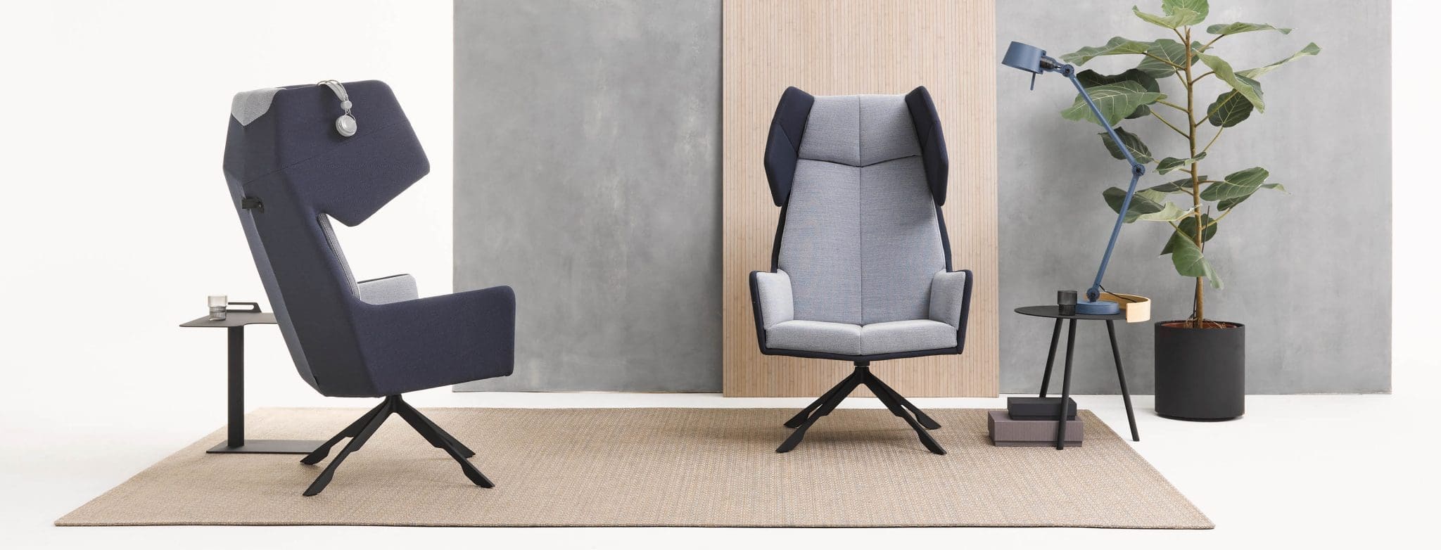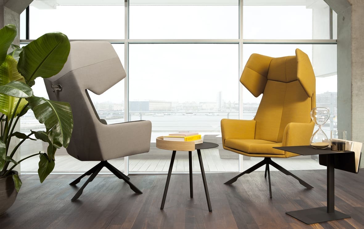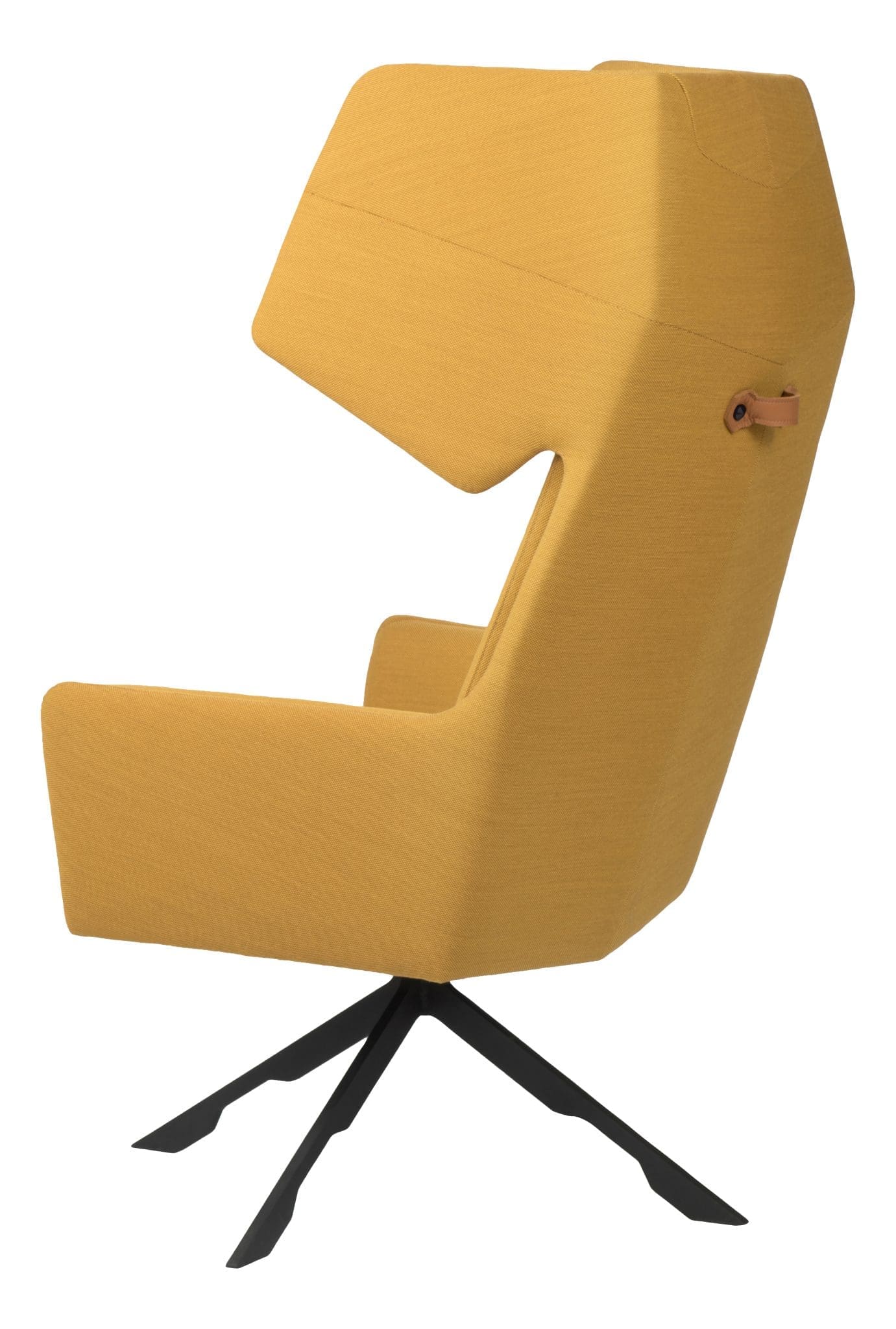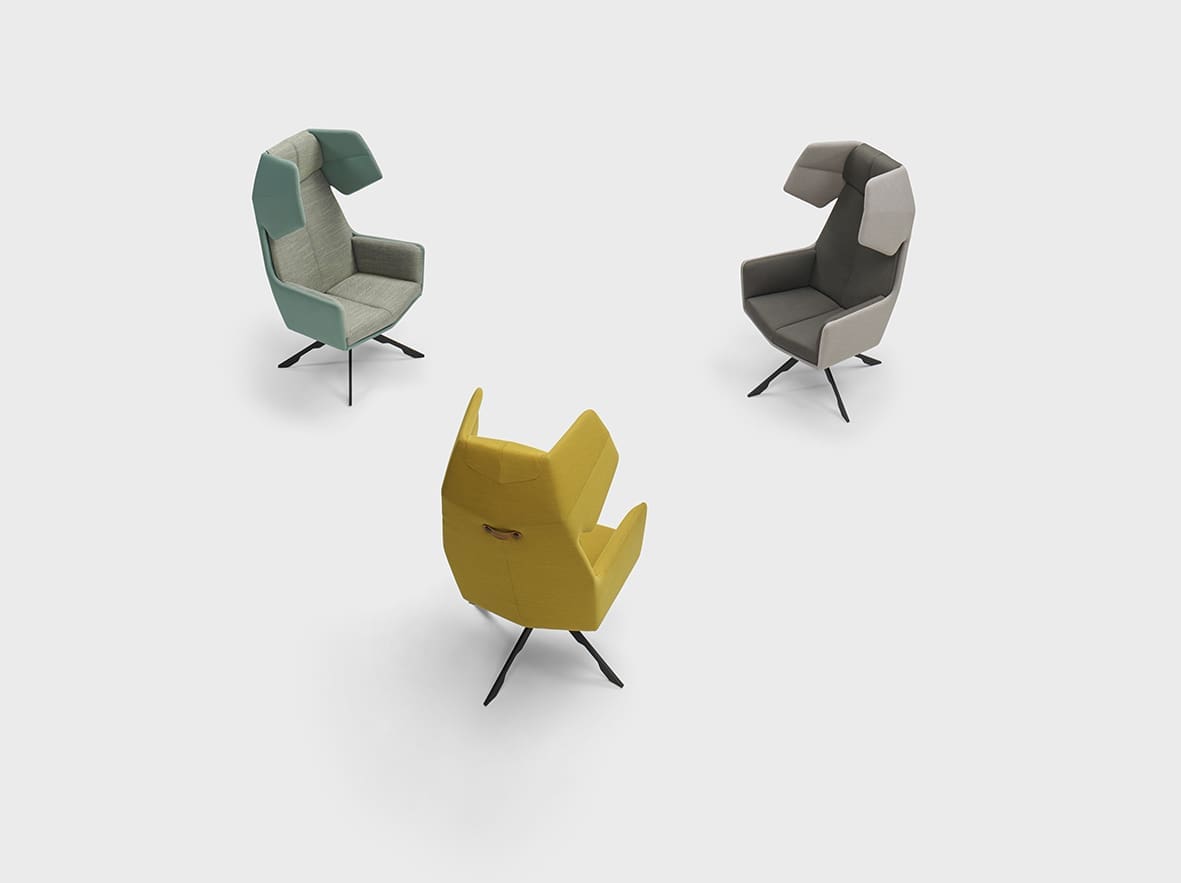 The design of the Rama armchair is inspired by Japanese origami. The folded upholstery of the headrest is a recognisable detail of this art of folding. With its curved and angular shapes, Rama invites you to take a seat. The double skin upholstery of the seat shell guarantees a sleek play on the outside while the soft inside guarantees sitting comfort. A remarkable detail is the leather strap on the back of this winged chair.