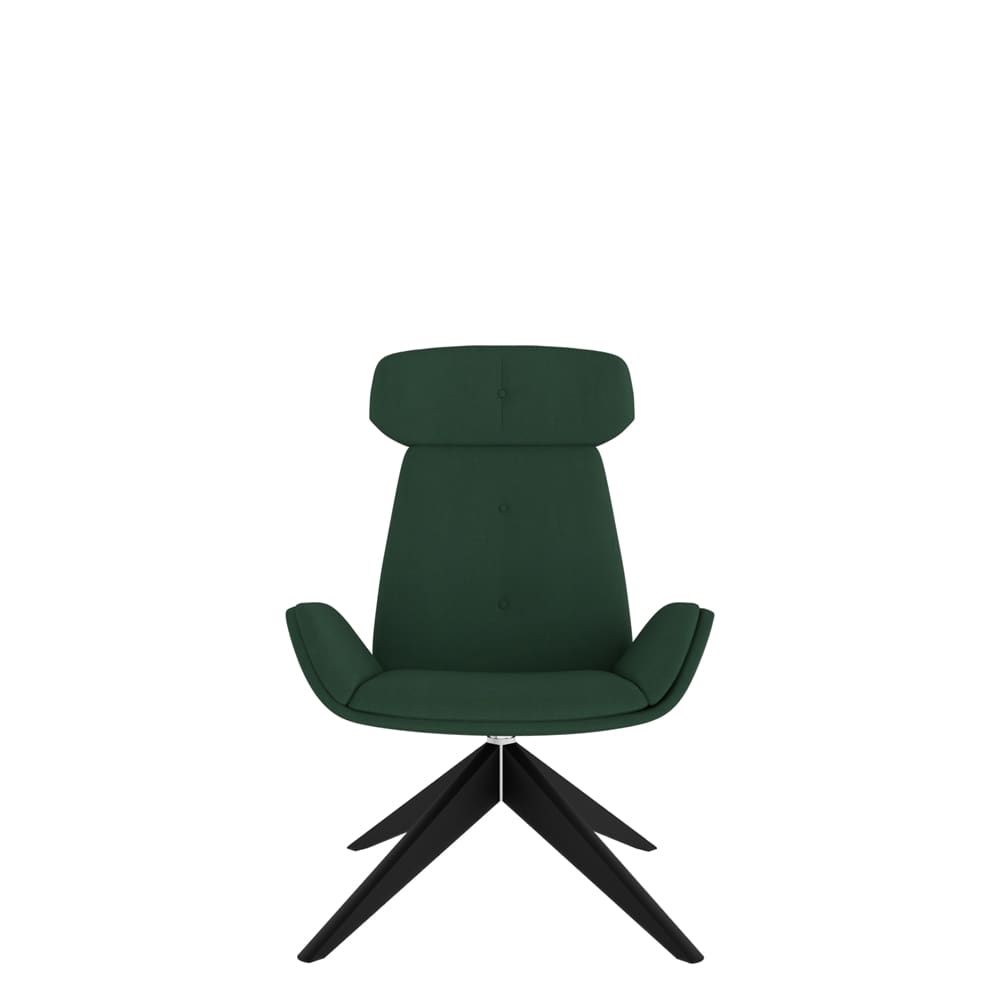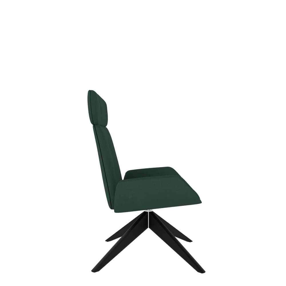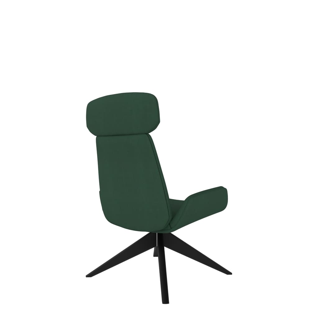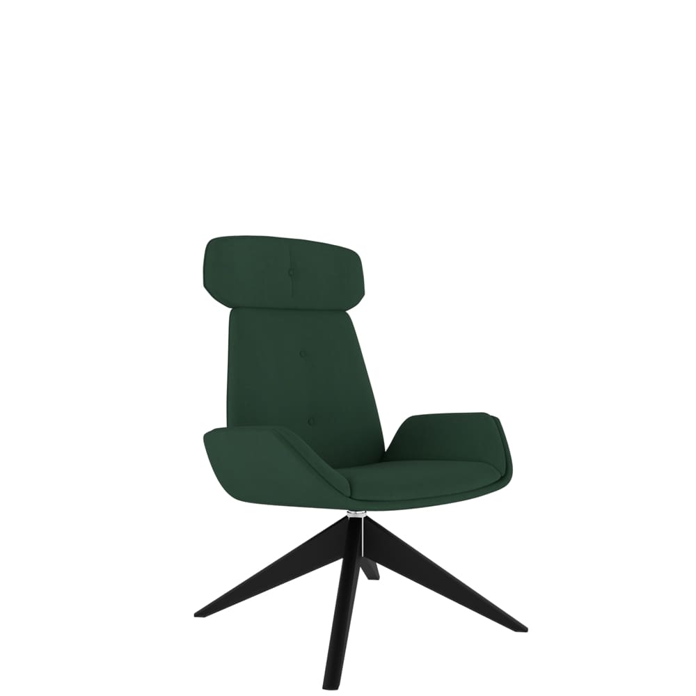 UPHOLSTERED LOUNGE ARM CHAIR WITH HEADREST AND BLACK PYRAMID BASE