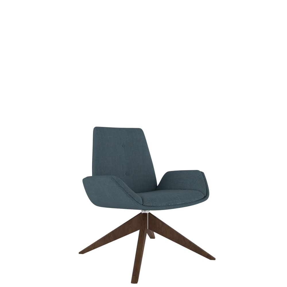 UPHOLSTERED LOUNGE ARM CHAIR WITH WALNUT PYRAMID BASE