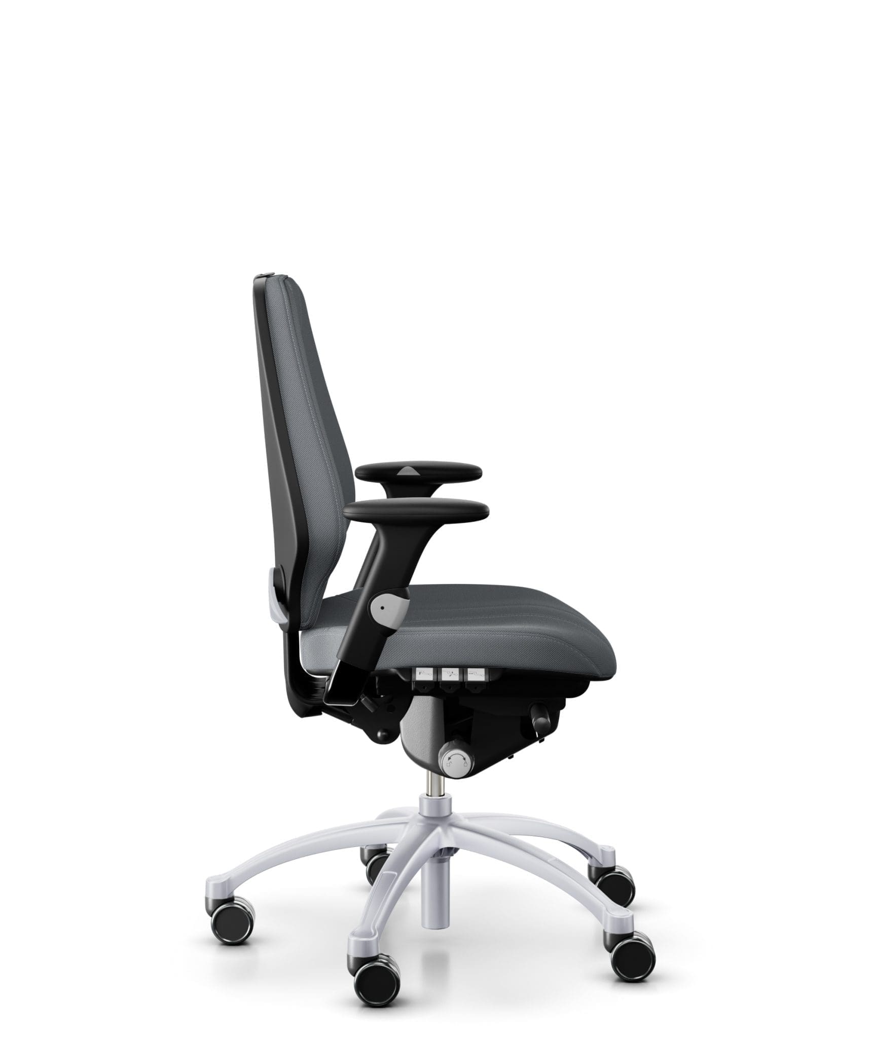 Frictionless tilt mechanism. Infinitely adjustable and can be locked in chosen position. We recommend to work with the tilt open to encourage active seating. Separately adjustable backrest angle for support in any position.
