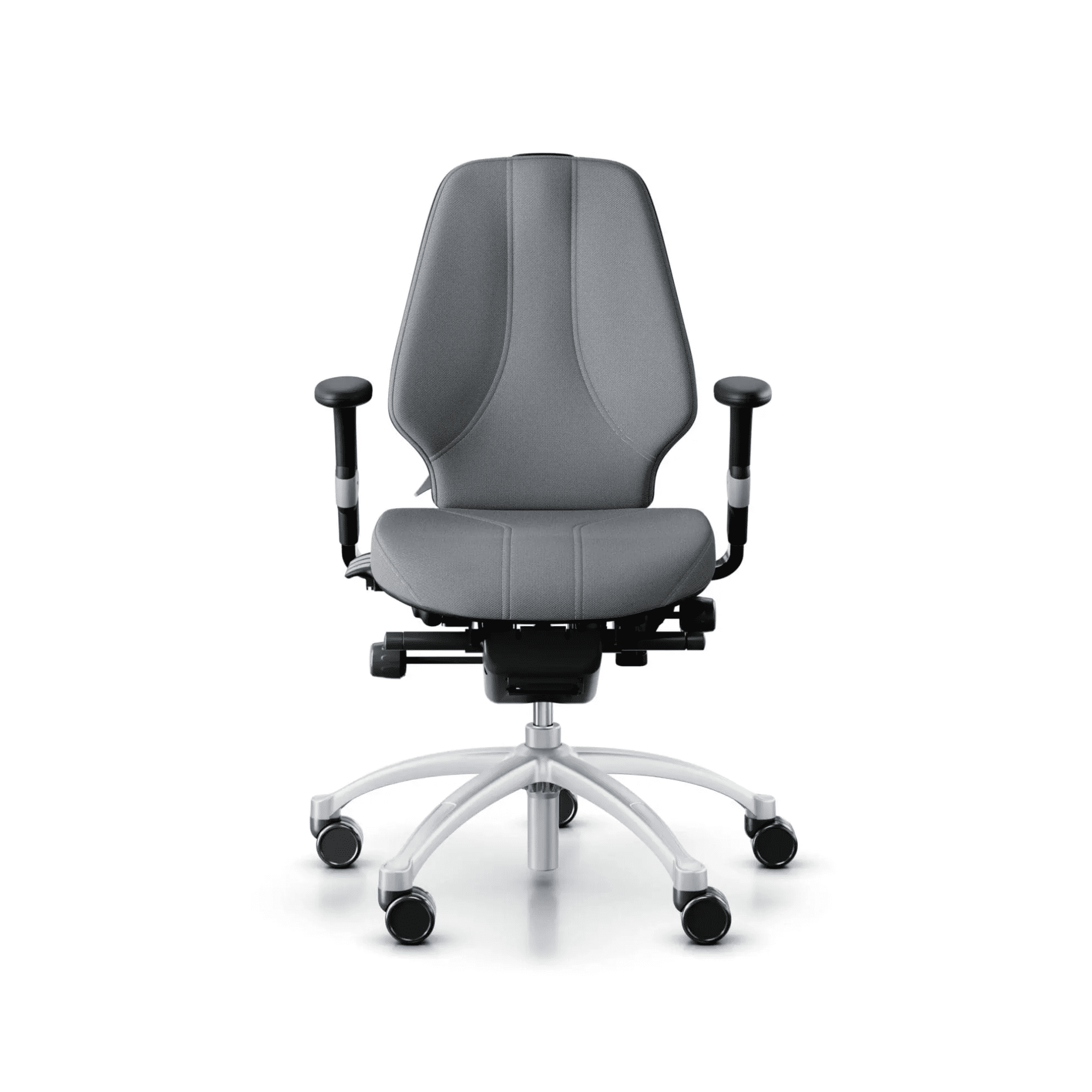 RH Logic 300 has medium back and comes as standard with castors for soft floors and base in silver aluminium. It can be enhanced with a range of options and accessories. Adjustment controls are easy to understand reachable and visibly while seated.