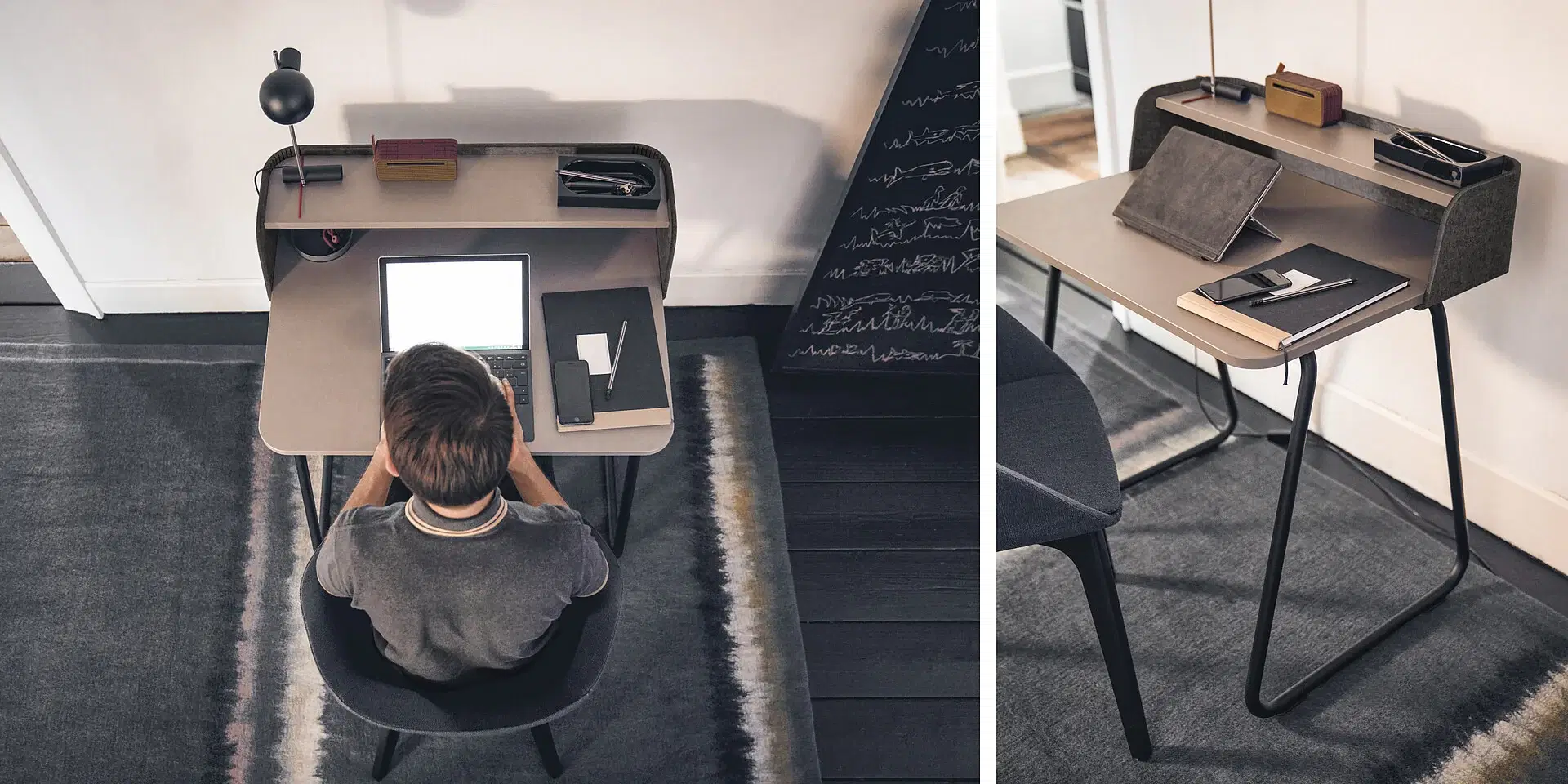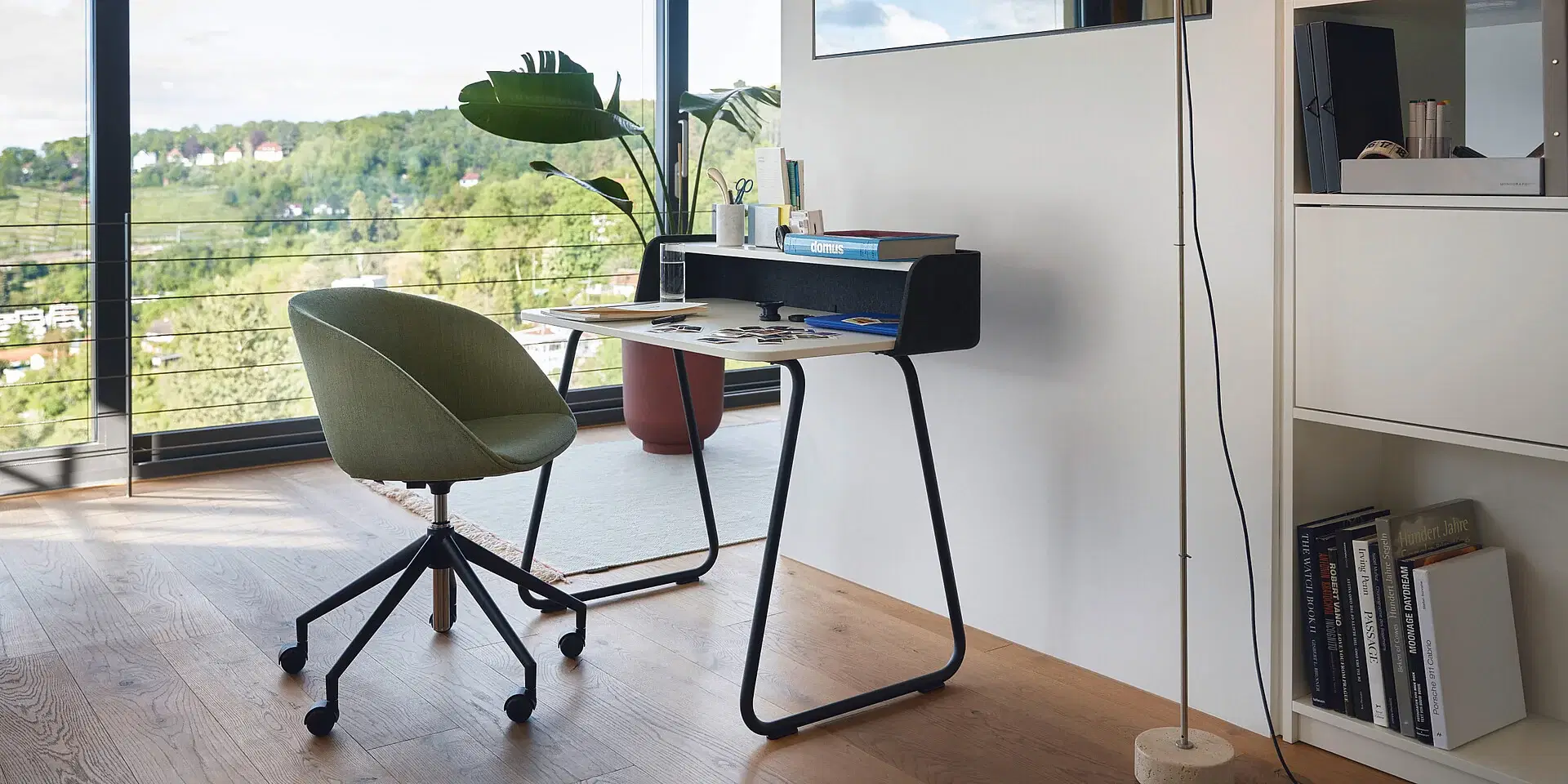 Its convenient size and the storage shelf for utensils make secretair home a real allrounder. It offers plenty of space for storing documents within easy reach. At the same time, the desk doesn’t take up much space in a room or corridor.