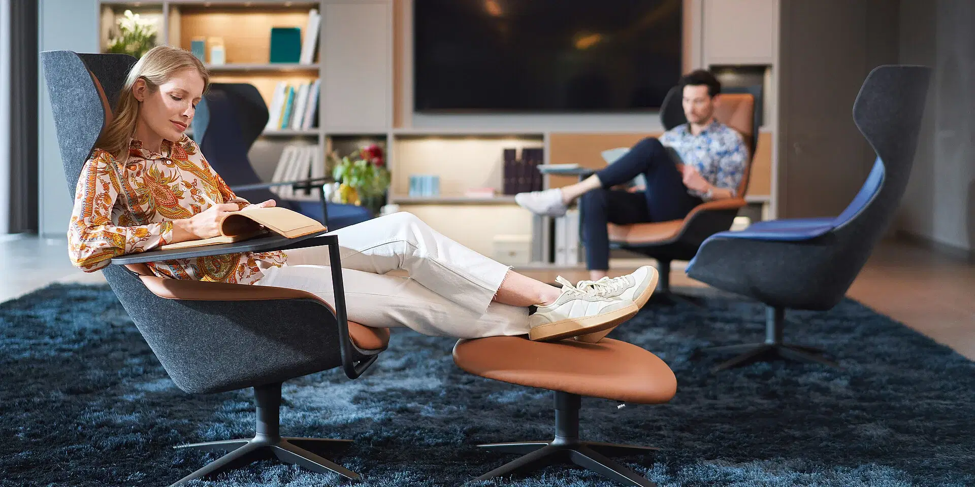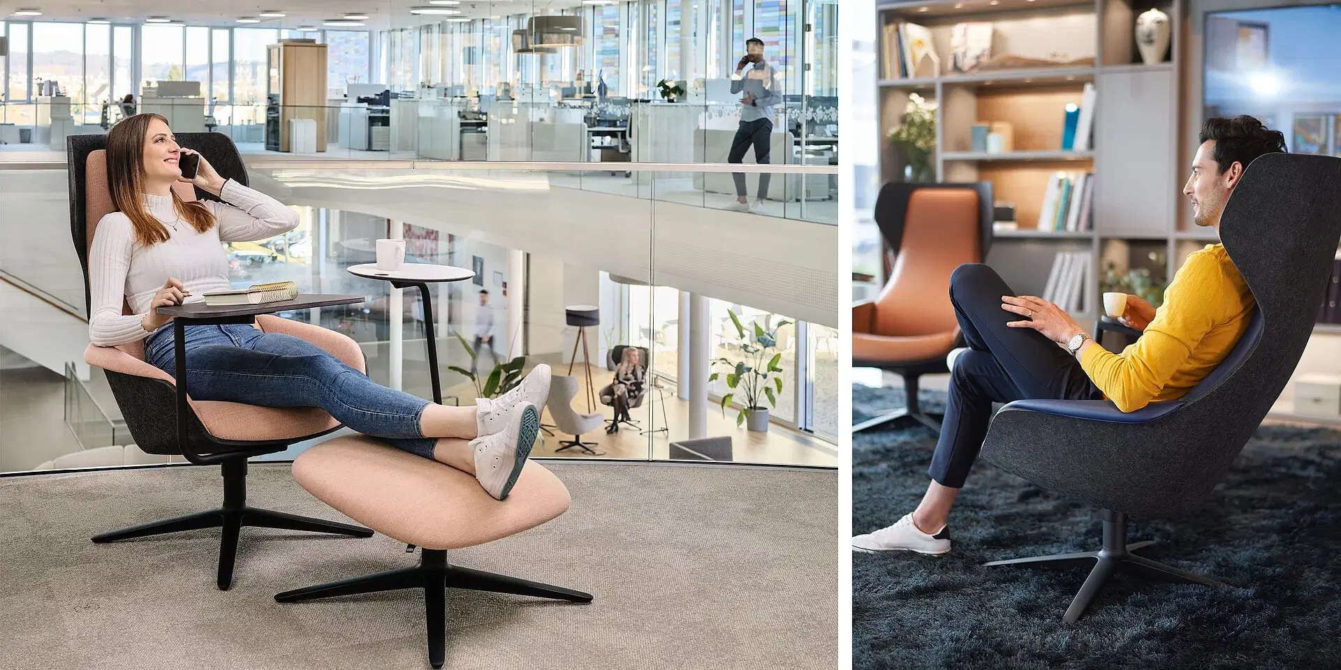 | Shell | • One-piece seat shell made of PET felt with rounded armrest wings and isolating “ears”, ergonomically shaped seat pan and tapered backrest • Seat tilt of about 8,5° for slightly upright sitting position between an active and a relaxed seating position for use in combination with a writing tablet |