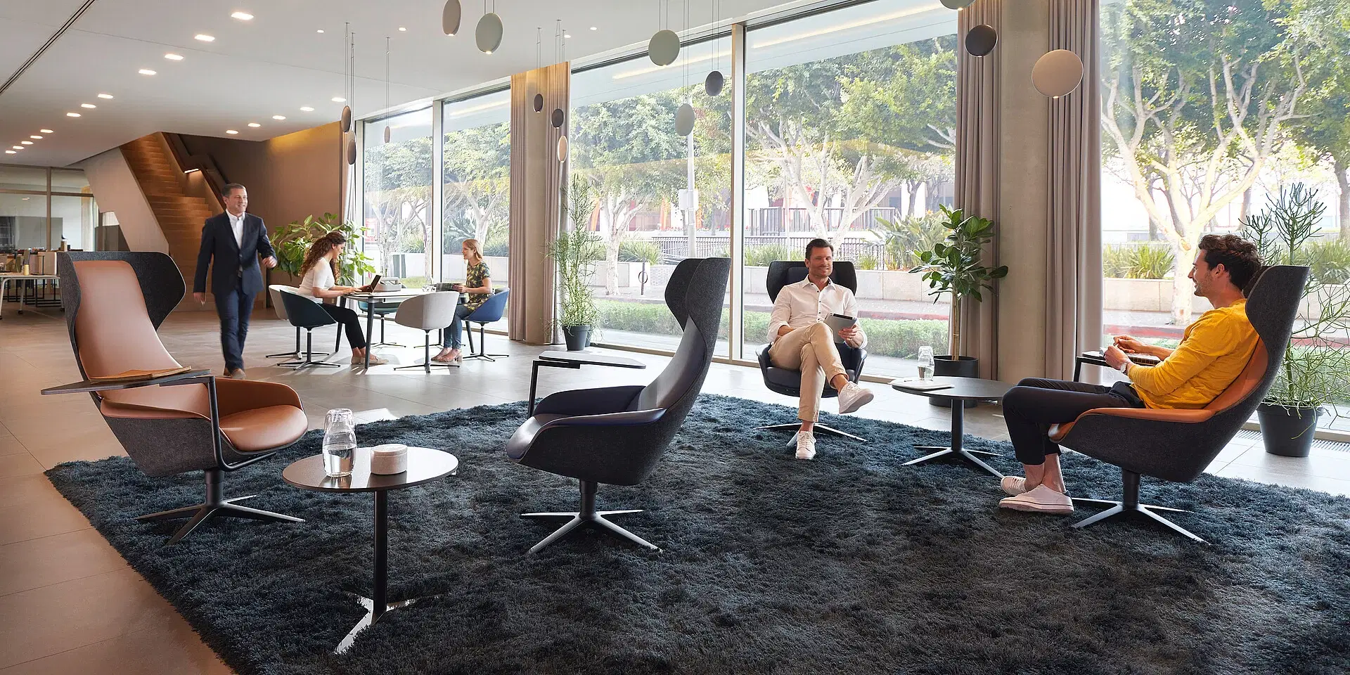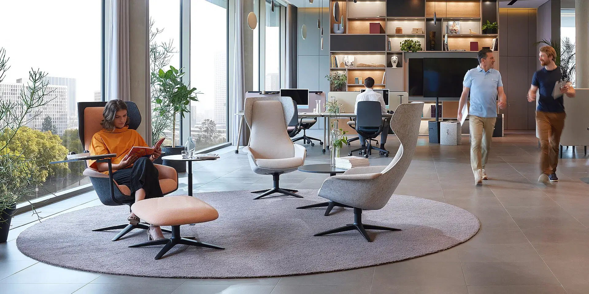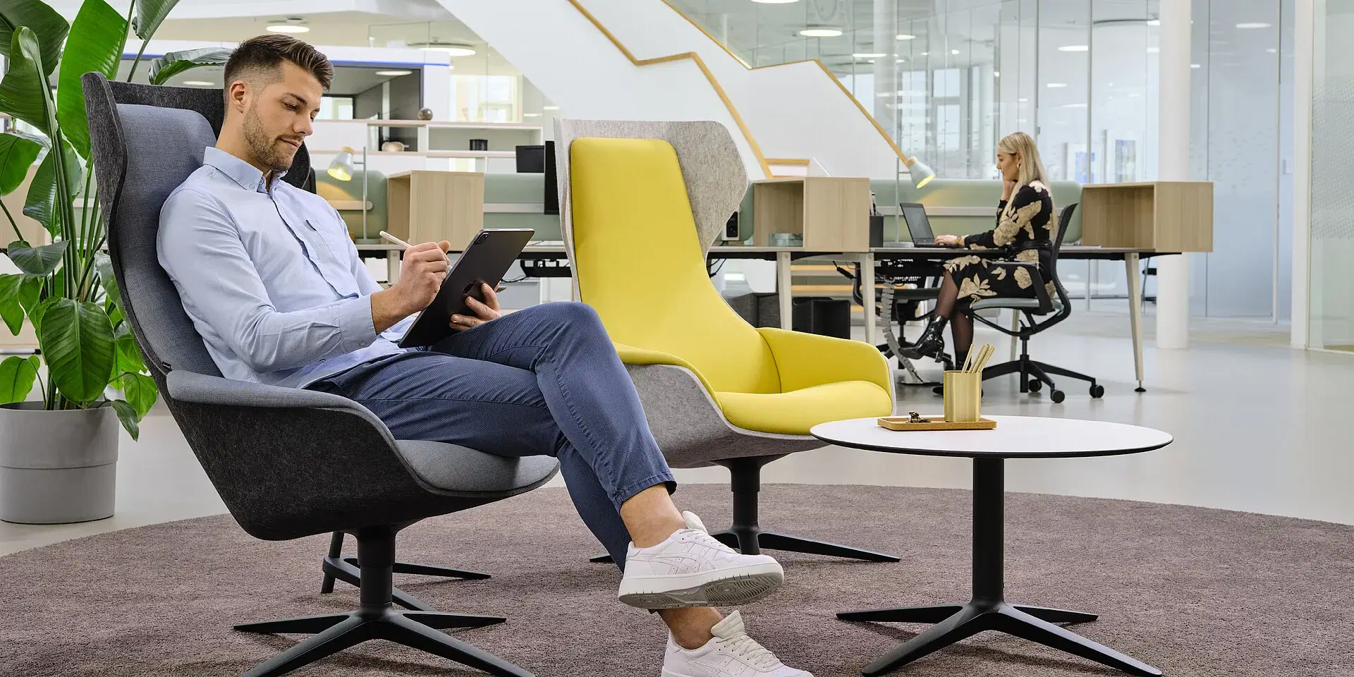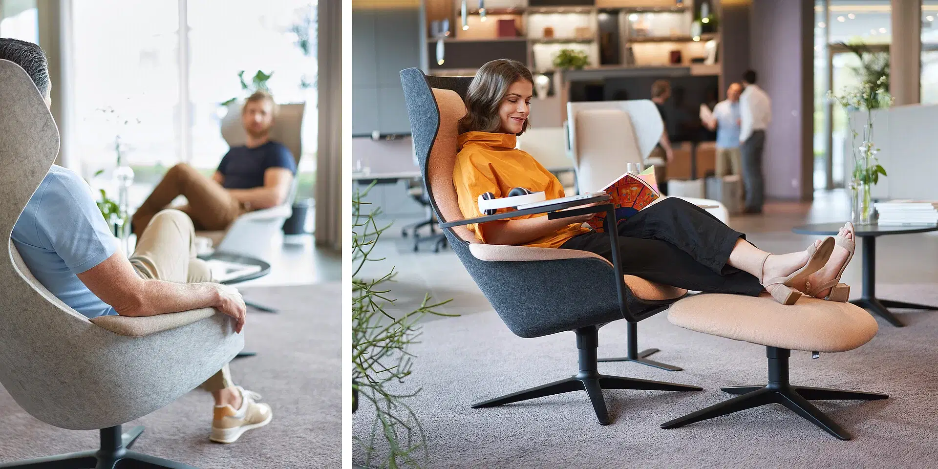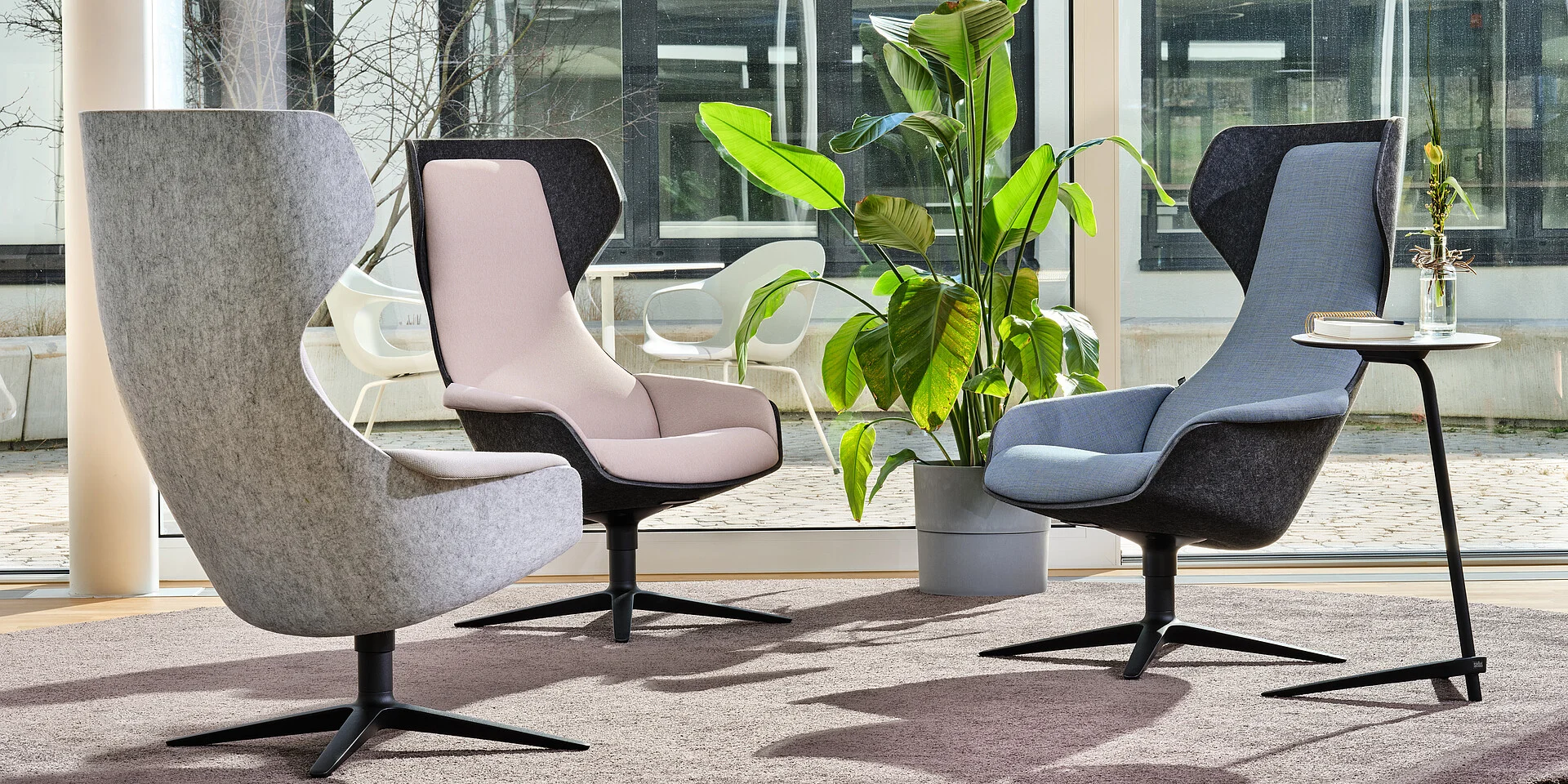| Shell | • One-piece seat shell made of PET felt with rounded armrest wings and isolating “ears”, ergonomically shaped seat pan and tapered backrest • Seat tilt of about 8,5° for slightly upright sitting position between an active and a relaxed seating position for use in combination with a writing tablet |